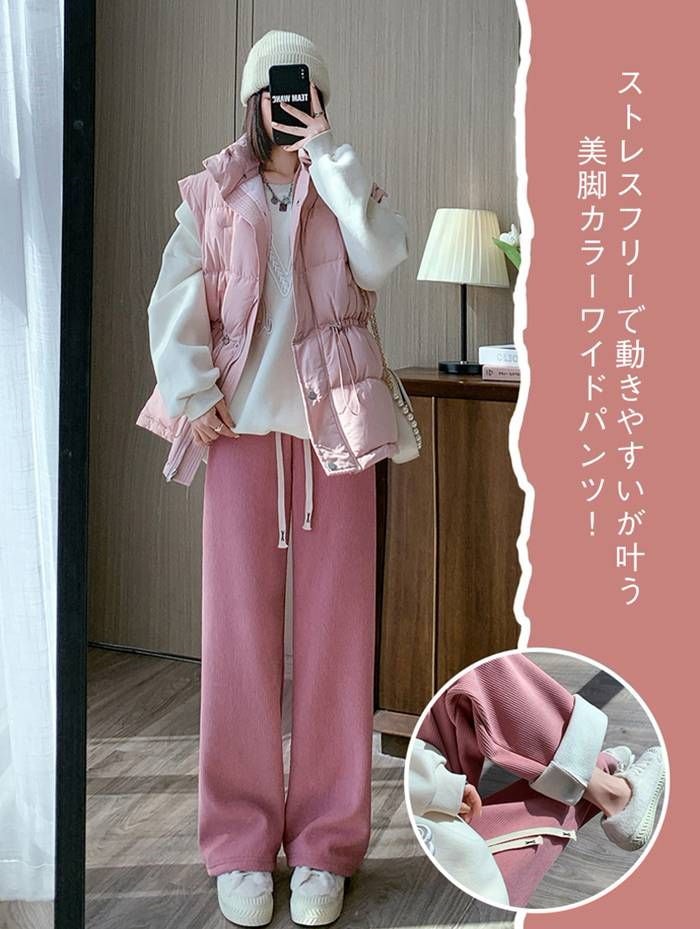 ズボン ルームウェア 冬 裏起毛 コーデュロイ ワイドパンツ ロング丈 カジュアル あったか 裏起毛パンツ 裏ボア シンプル 大人可愛い 無地 楽ちん ズボン