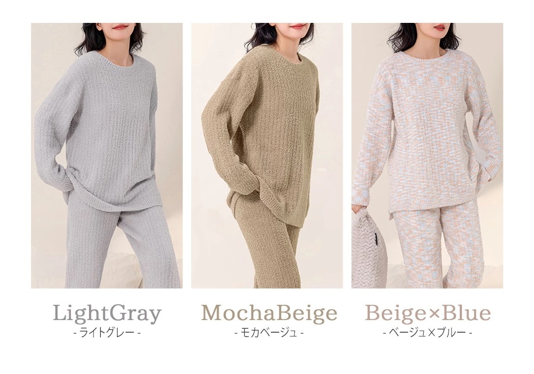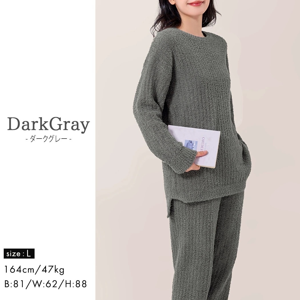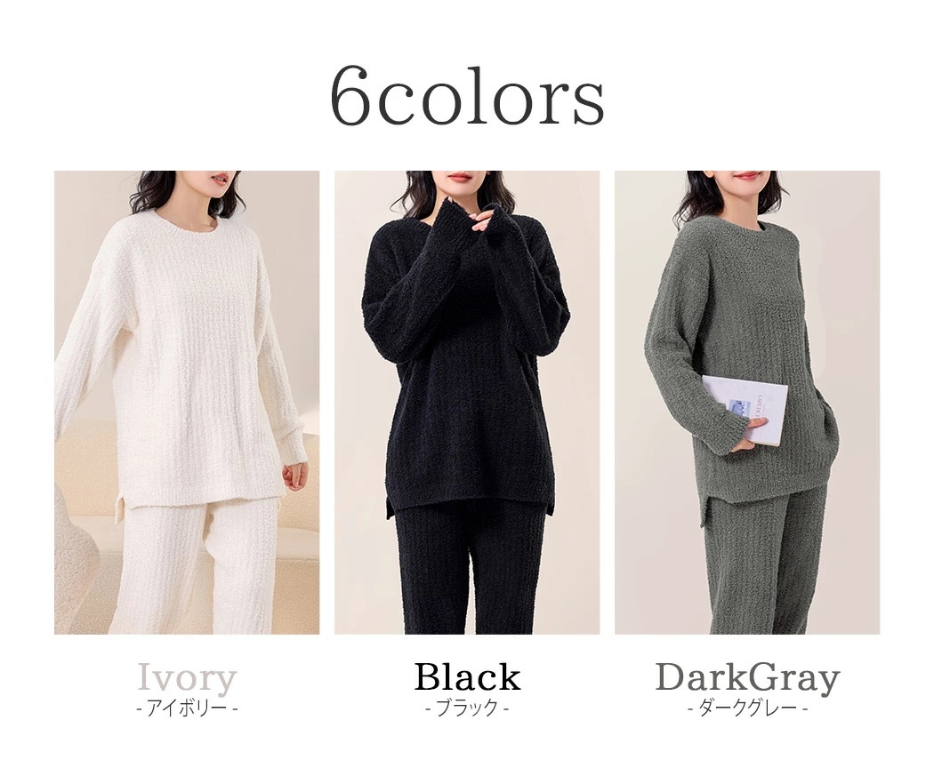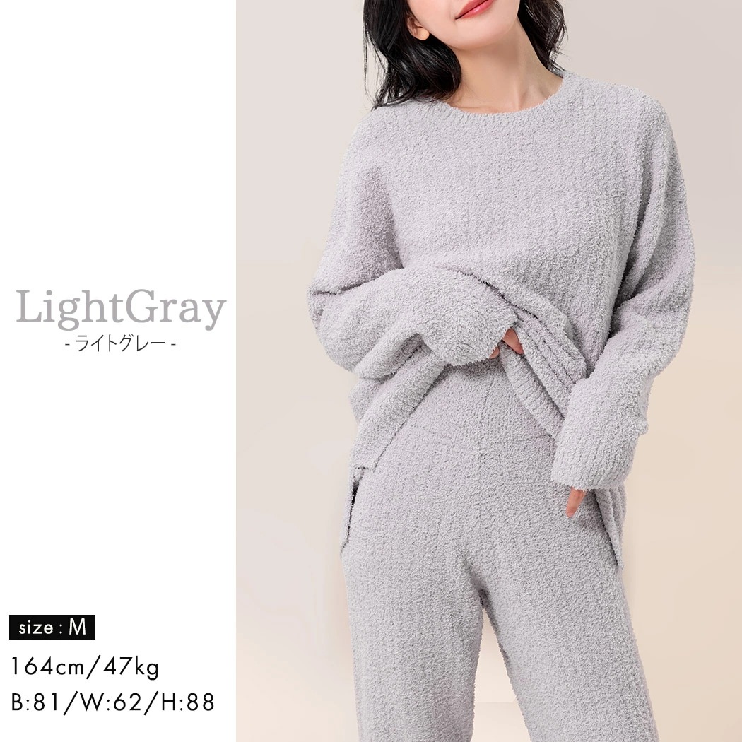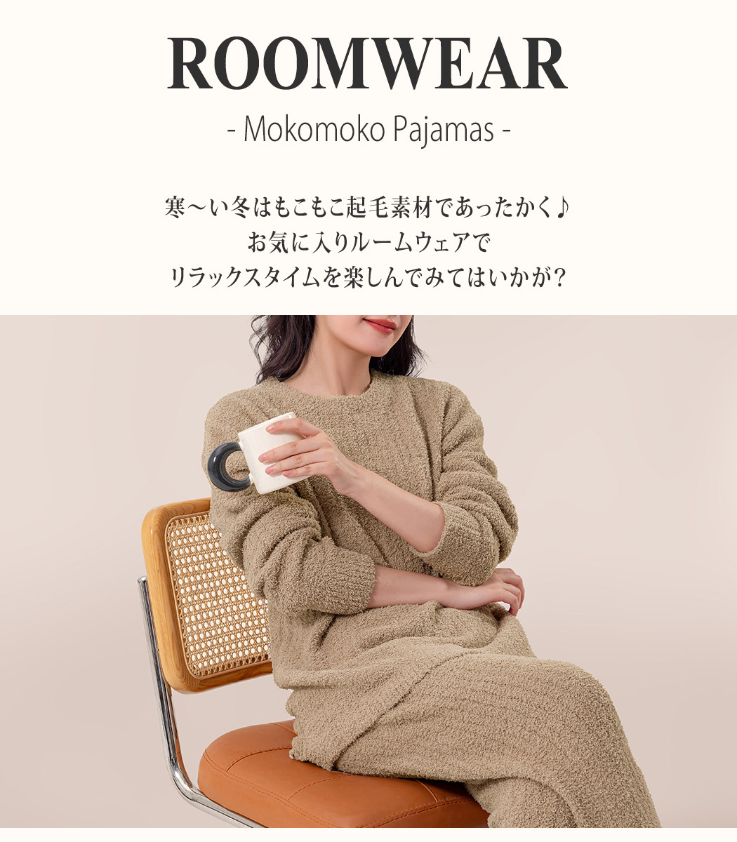 ,ルームウェア レディース 長袖 上下セット モールニット 起毛 パジャマ 寝巻き 部屋着 セットアップ プルオーバー トップス パンツ 腹巻き 一体型 ストレッチ 保温 吸湿性 静電気防止 通気性