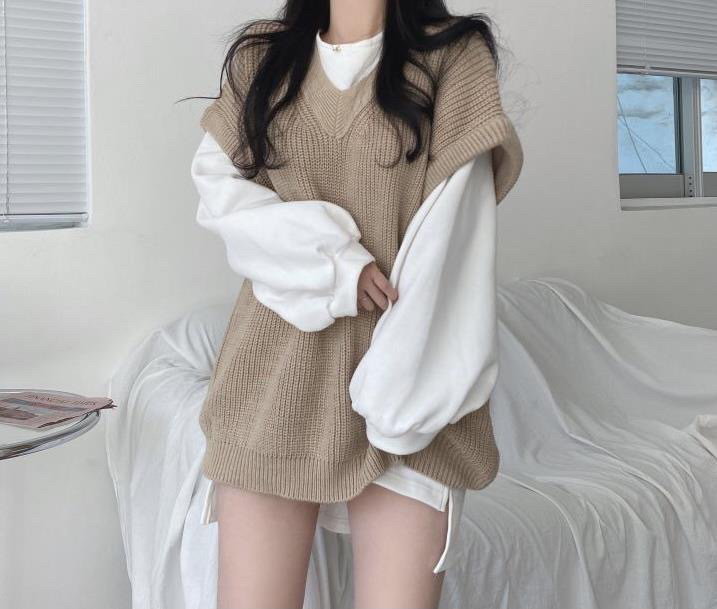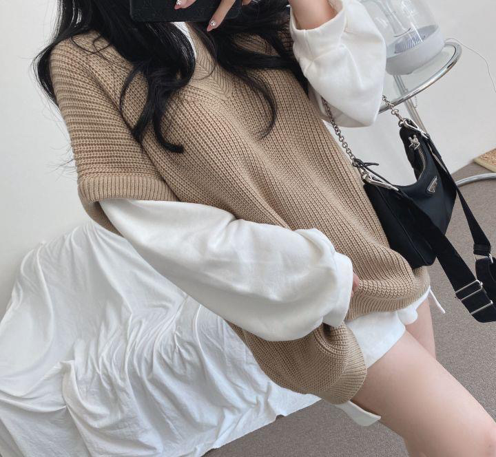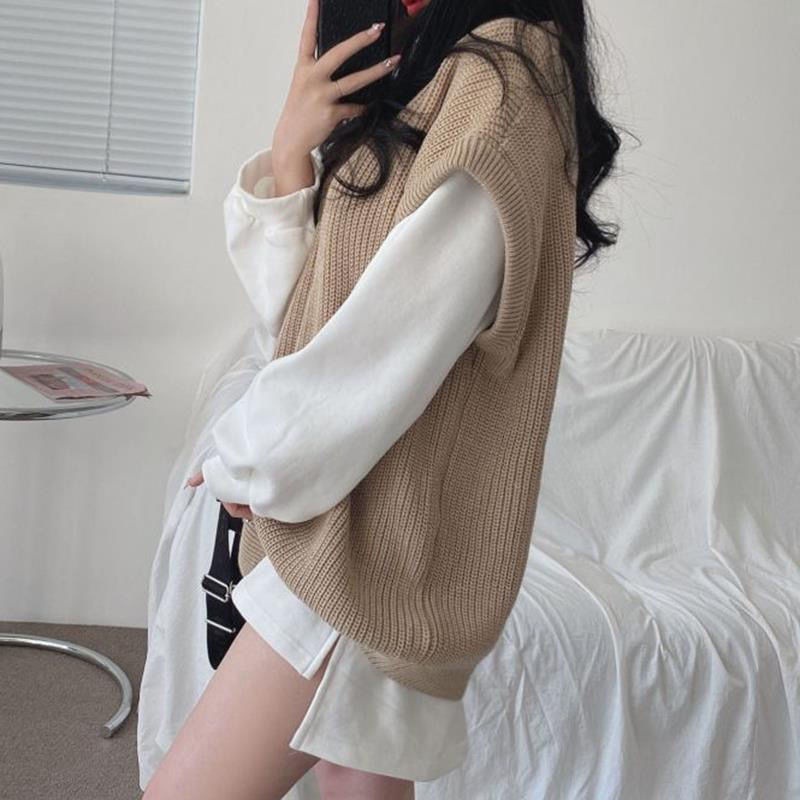 韓国ファッション秋冬 ニット ベスト ゆったり シンプルトップス ニットベスト 最安値に挑戦 Vネックトップスレディース セーター ベスト ベーシックニット