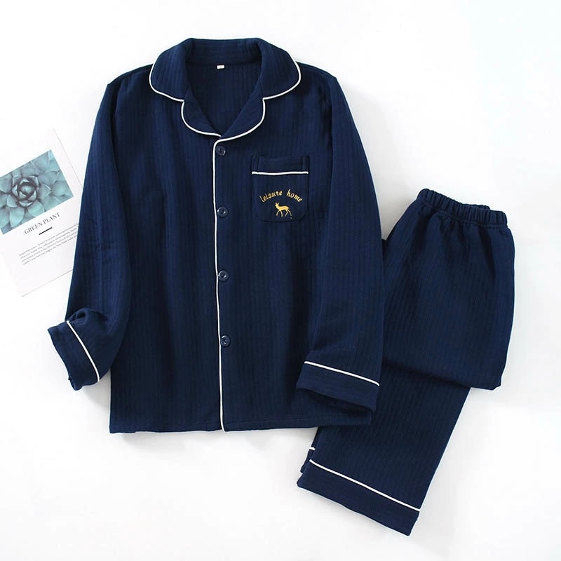 パジャマ メンズ 綿100% キルト 長袖 前開き 冬 上下セット M L ルームウェア 肌に優しい 暖かい 冬用 入院 紳士 旅行 無地 シンプル コットン 厚手 春 秋 男性 部屋着