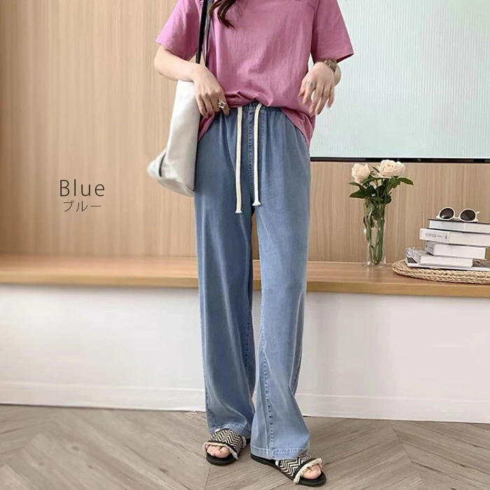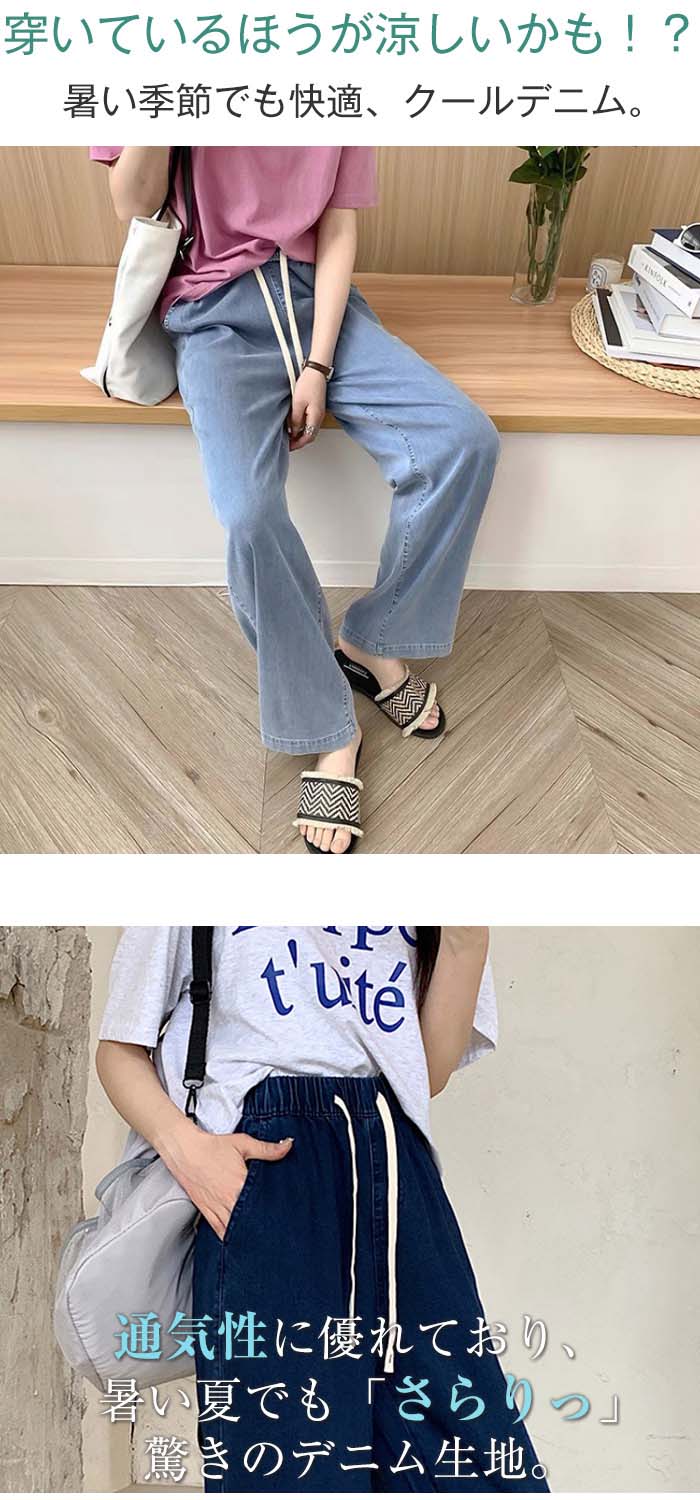 ワイドパンツ レディース デニム パンツ 大きいサイズ ひんやり ガウチョ デニムワイドパンツ UVカット 春 きれいめ ボトムス ゆるパンツ 薄手 夏 ウエストゴム 着痩せ 美脚 通勤 ゆったり 可