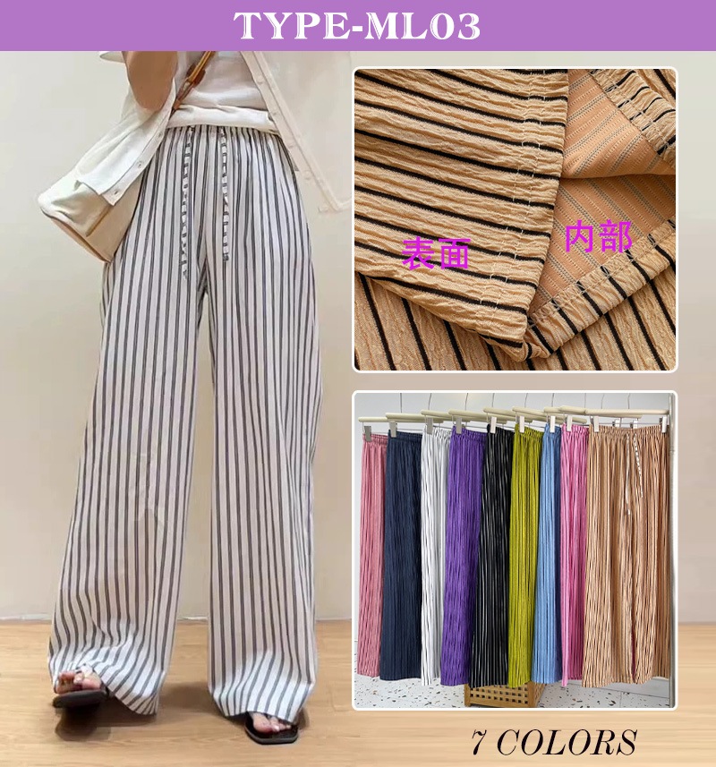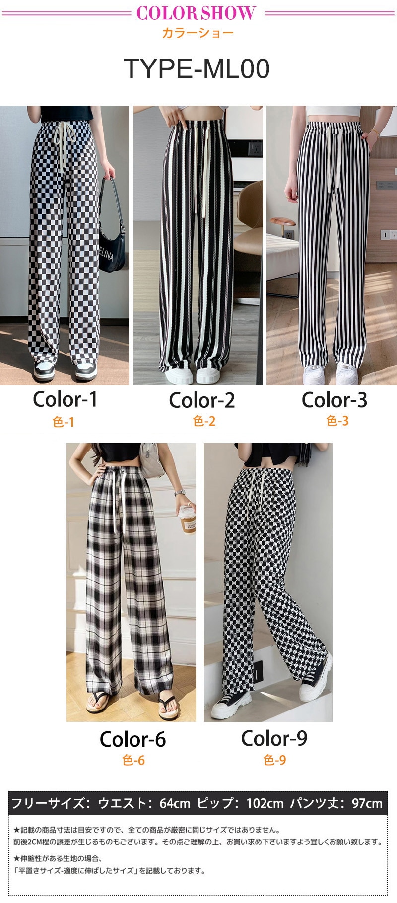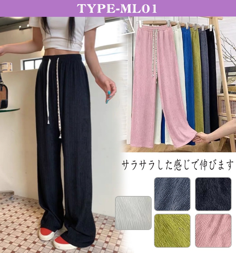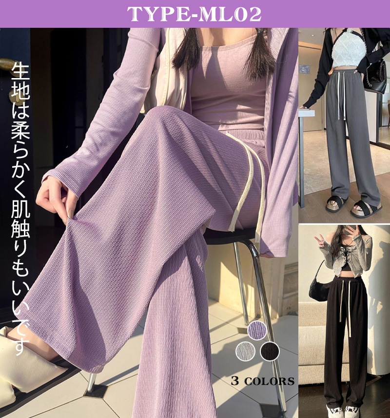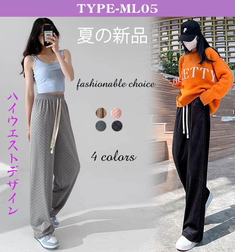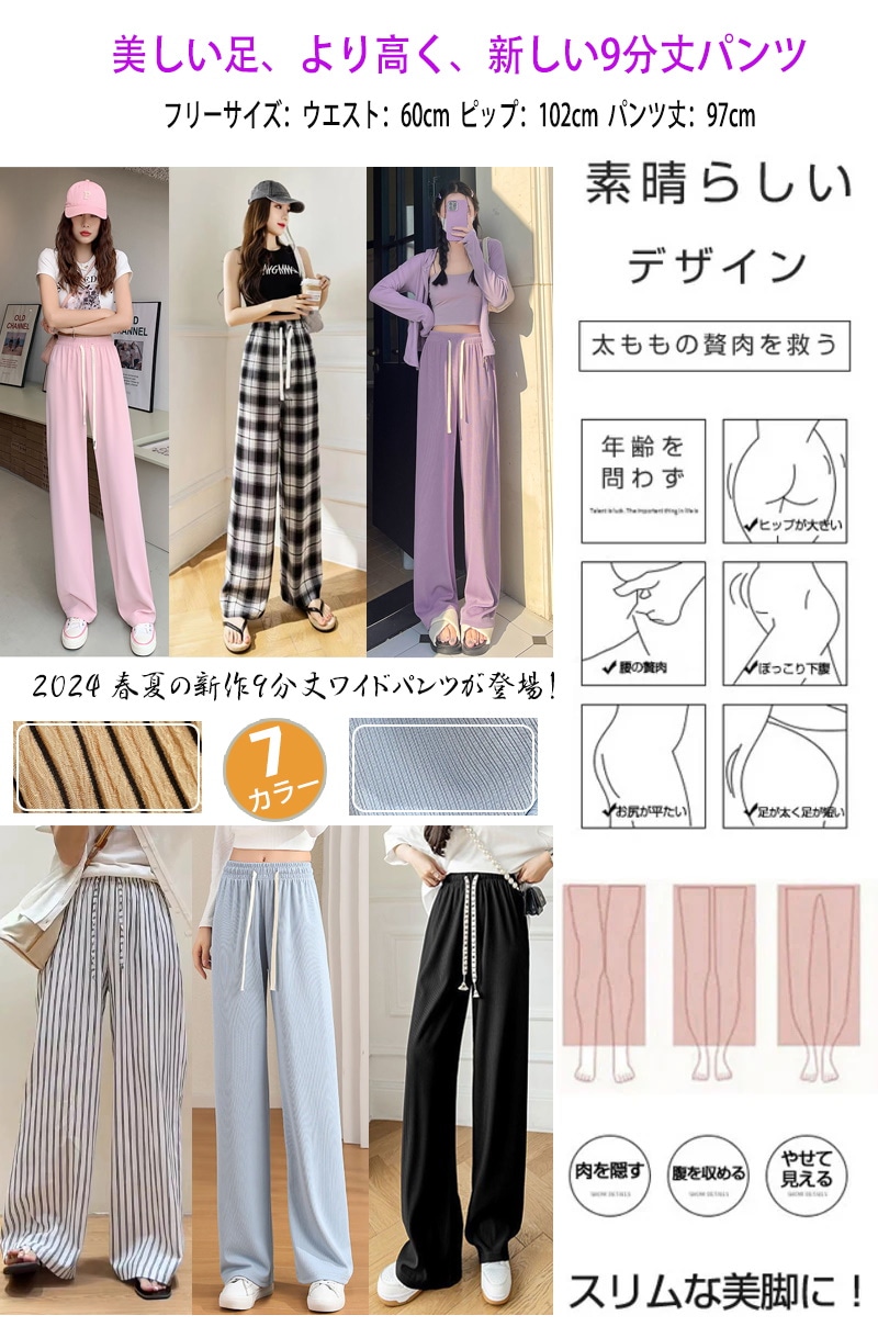 7 types無地イージーワイドパンツ トレンド リブ ワイドレッグパンツ レディース チェック柄ロングパンツ シンプル ゆったり リラックス カジュアル ズボン