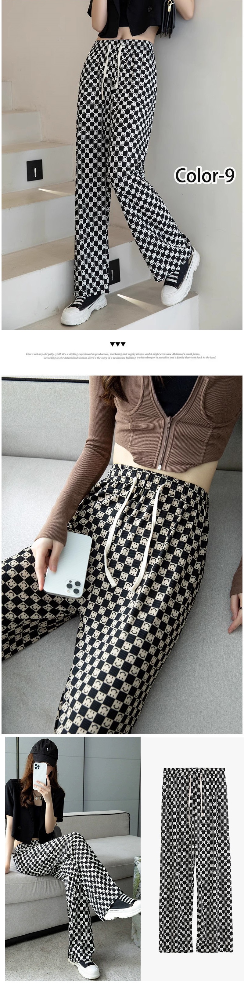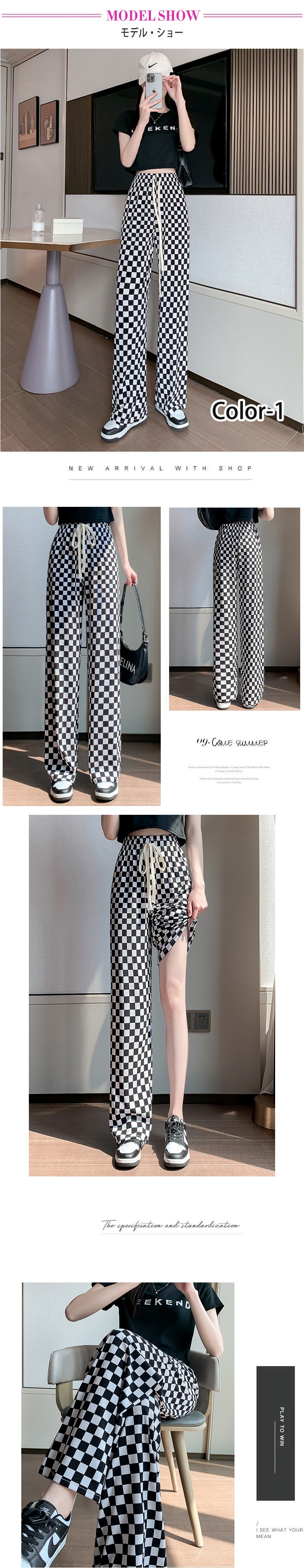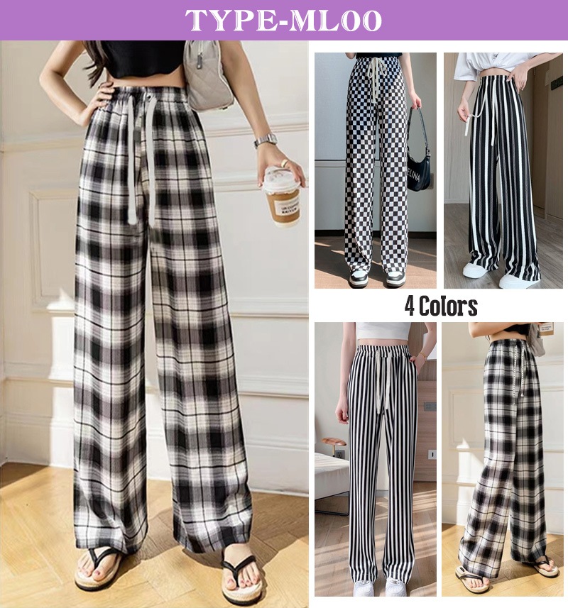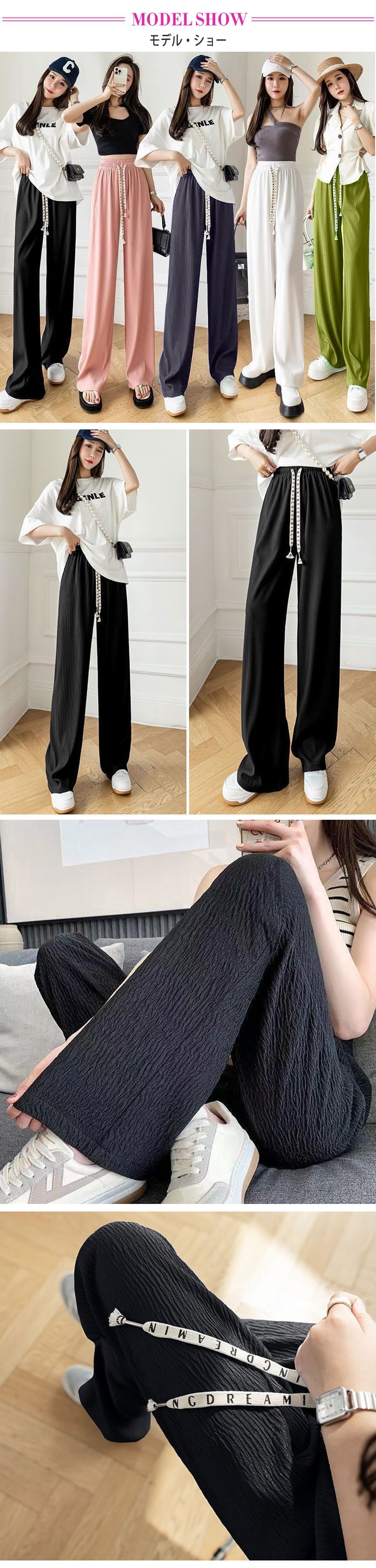 7 types無地イージーワイドパンツ トレンド リブ ワイドレッグパンツ レディース チェック柄ロングパンツ シンプル ゆったり リラックス カジュアル ズボン