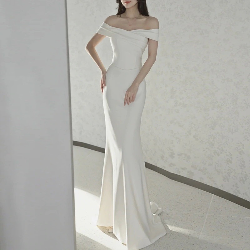 白 ウェディングドレス パーティードレス2024大人気 花嫁ロングドレス 韓国ファッション76 ワンピース 結婚式ワンピース ドレス 結婚式 気質 新作 高級感 ロングドレス