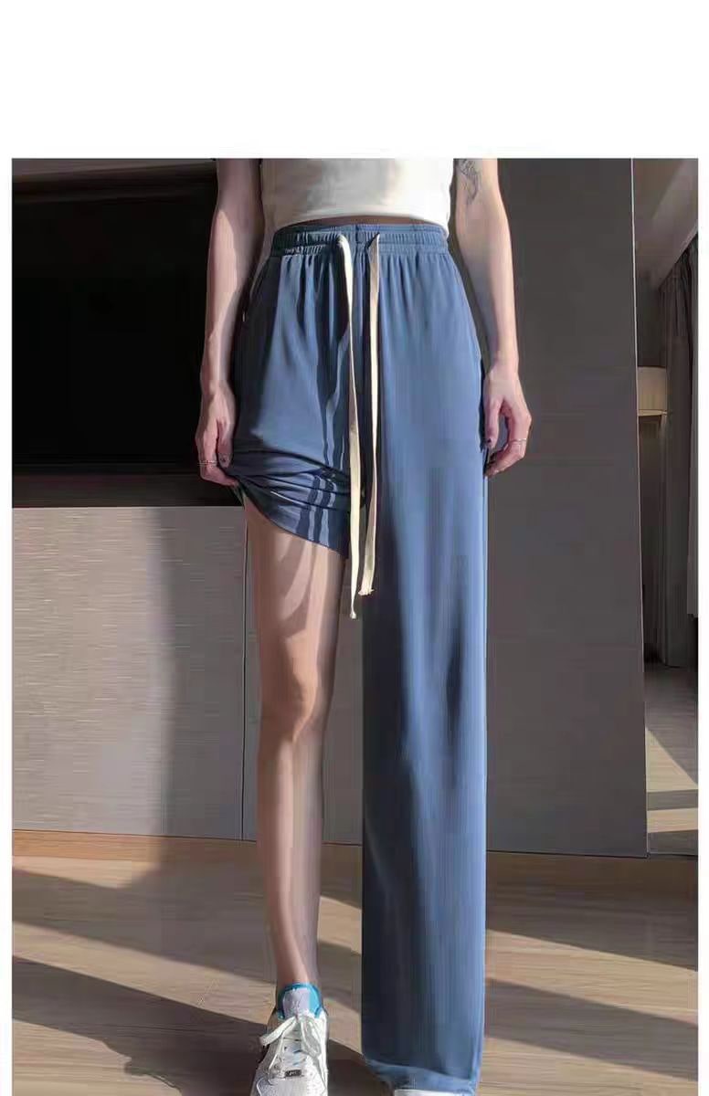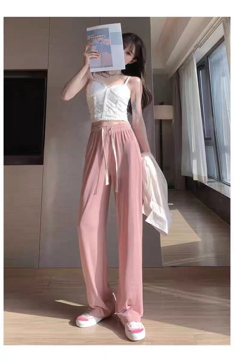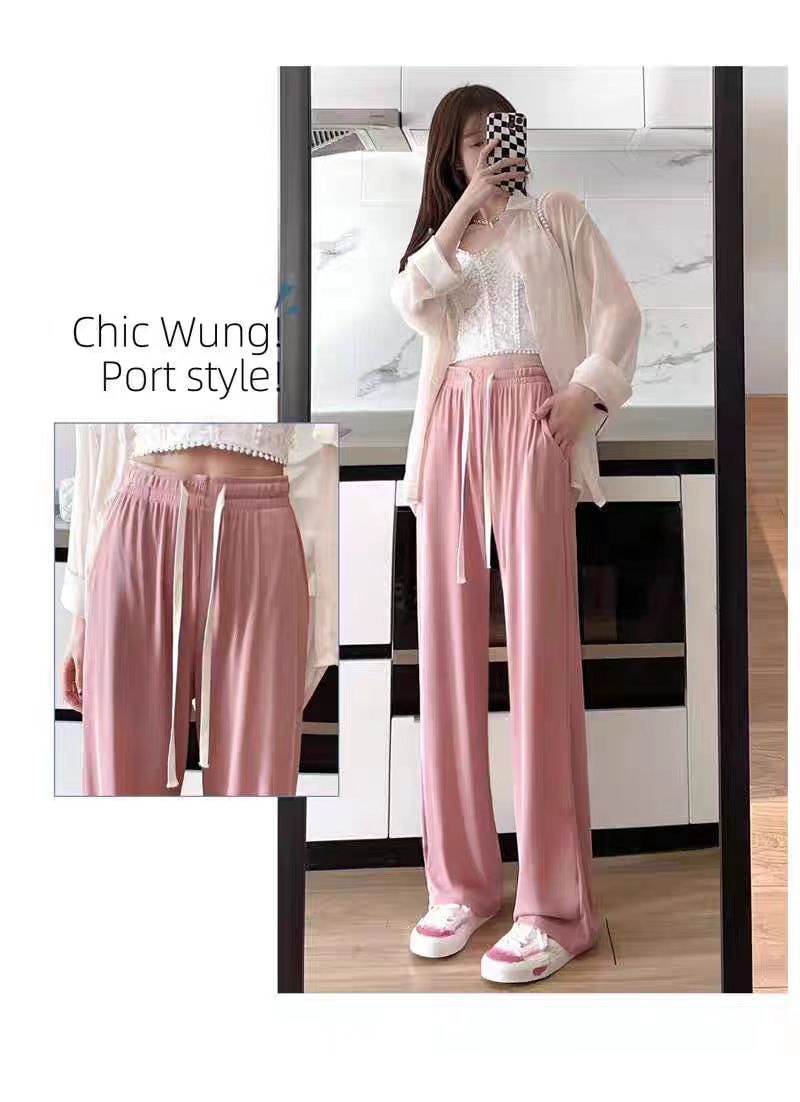 2025春新作ハイウエスト 美脚 脚長 ストレートパンツ レディース ウエストゴム 薄手 冷感 ワイドパンツ 九分丈 十分丈 ボトムス ワイド パンツ カジュアル おしゃれ シンプル かわいい