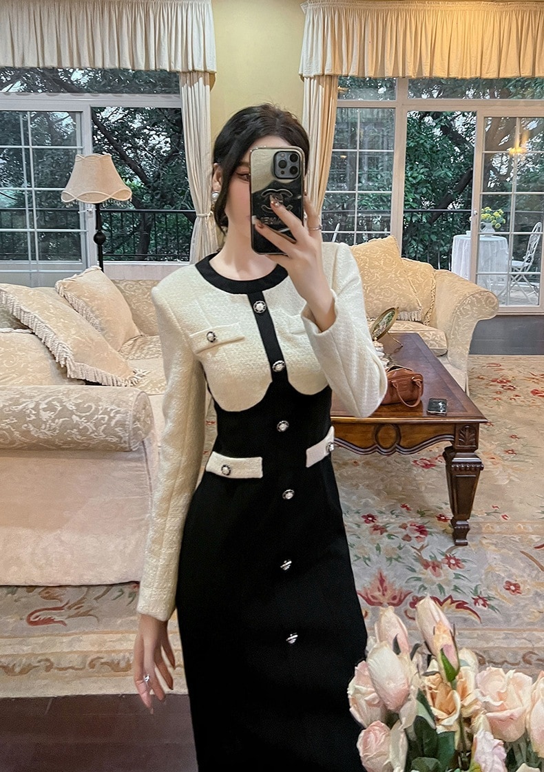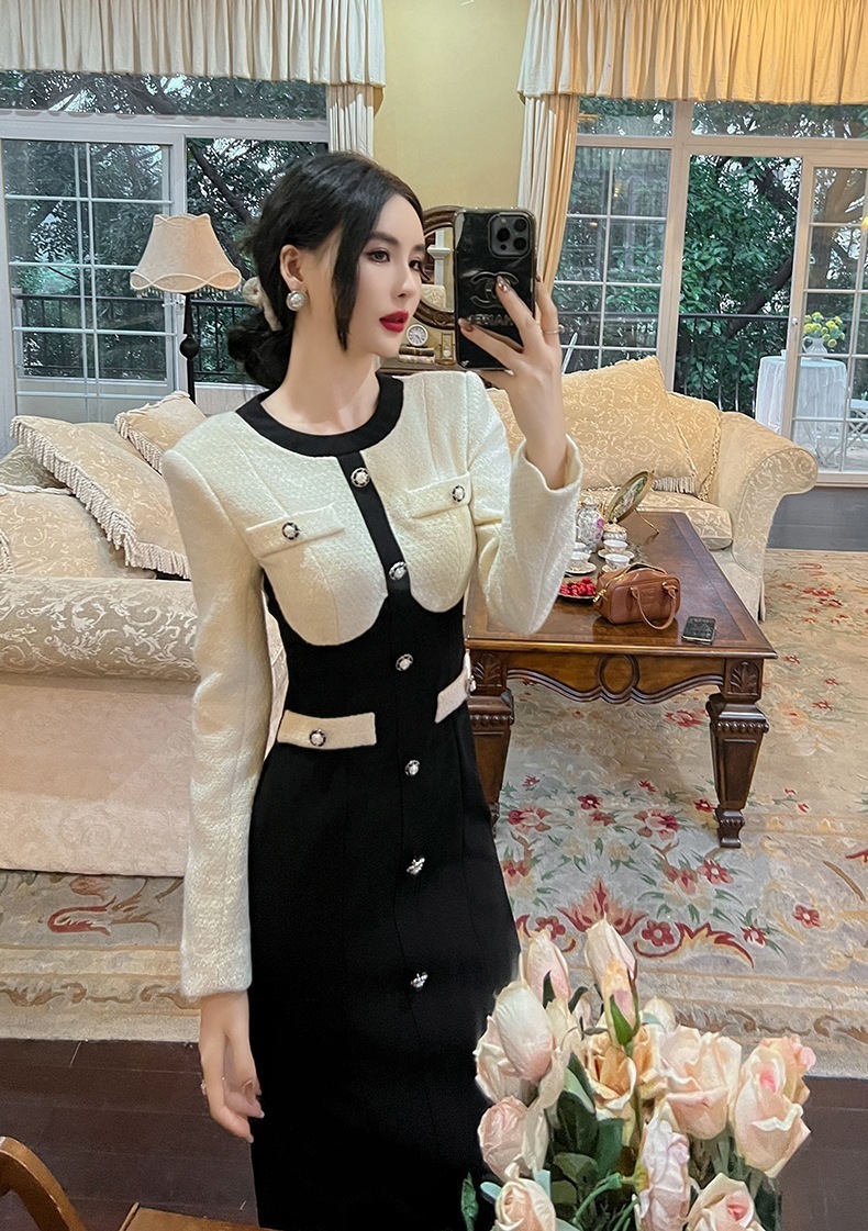 2024秋冬 スーツワンピース ドッキング パーティードレス 着痩せ 大人 お呼ばれ 同窓会 披露宴 卒業式 結婚式 ウェディング 二次会 成人式