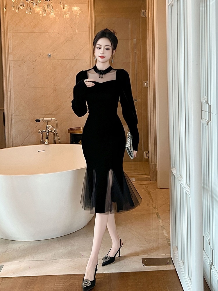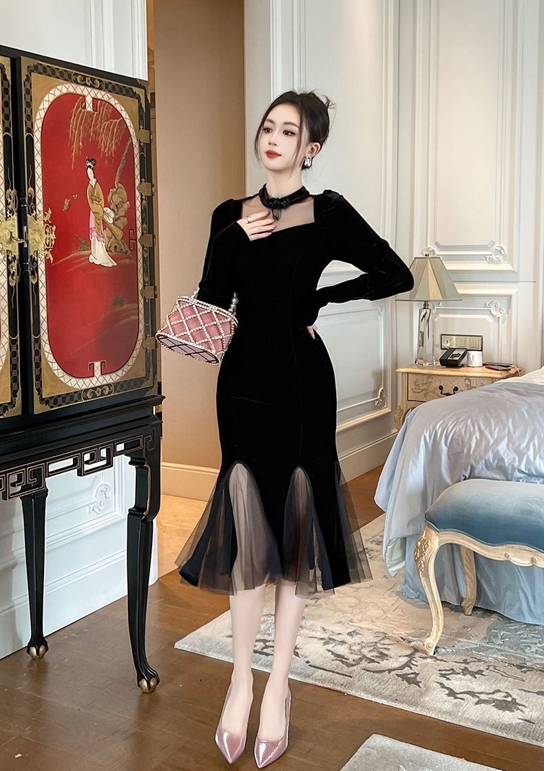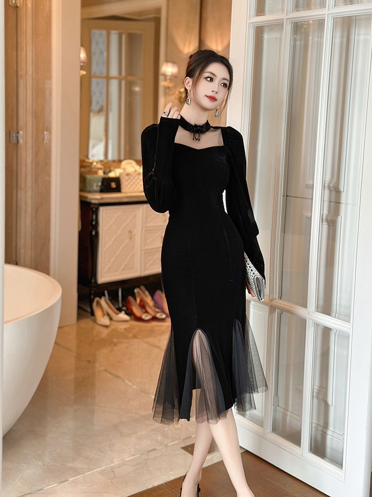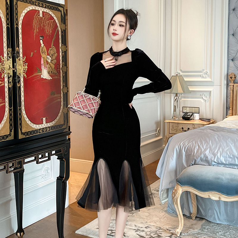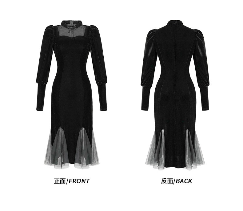 秋冬 チャイナドレス チュール マーメイド 新中式 ワンピ パーティードレス キャバ 着痩せ 大人 お呼ばれ 同窓会 披露宴 卒業式 結婚式 ウェディング 二次会 成人式