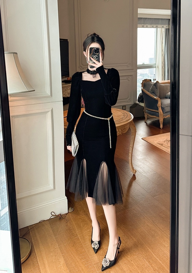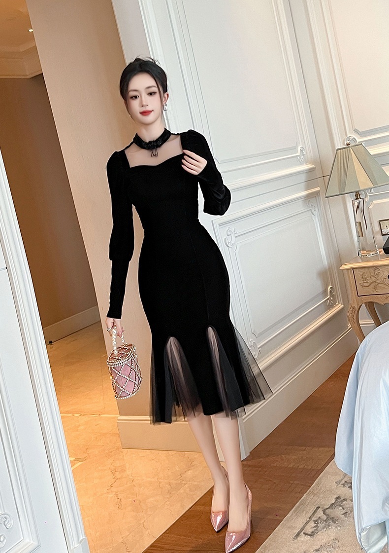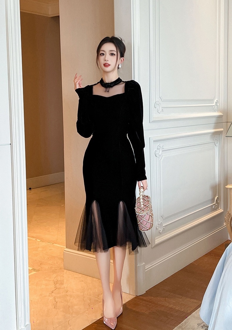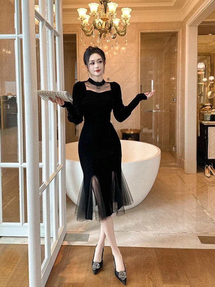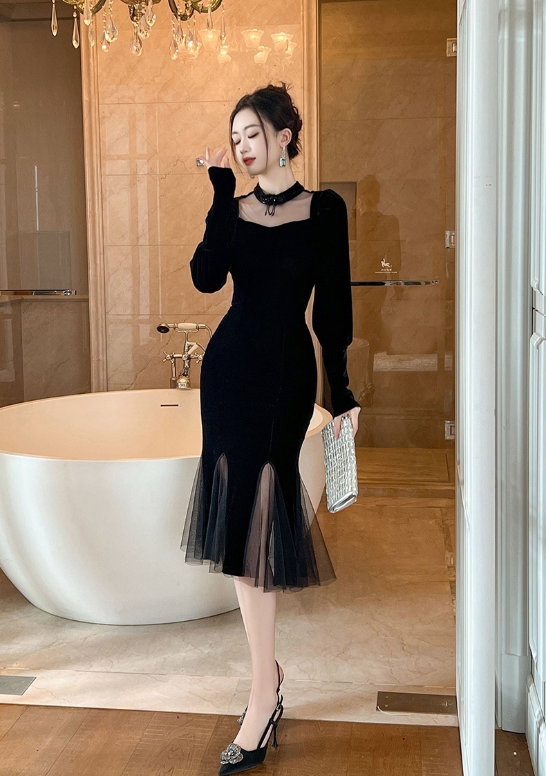 秋冬 チャイナドレス チュール マーメイド 新中式 ワンピ パーティードレス キャバ 着痩せ 大人 お呼ばれ 同窓会 披露宴 卒業式 結婚式 ウェディング 二次会 成人式