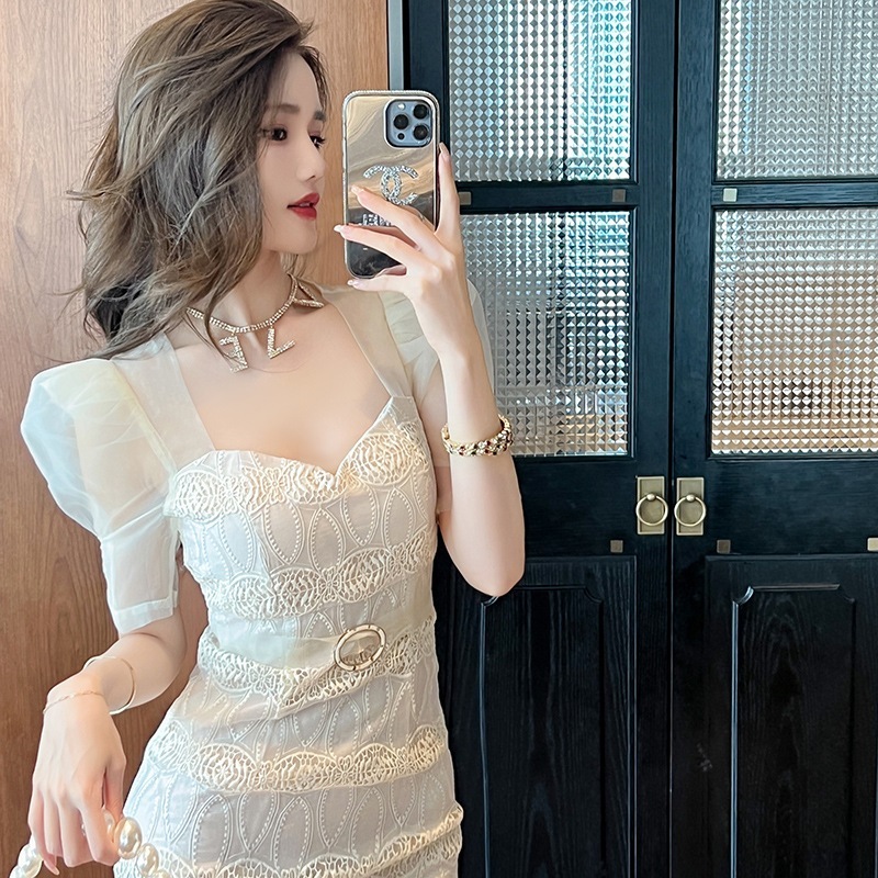 夏 チュールワンピース フリル レース ドレス パーティー キャバ 着痩せ 大人 お呼ばれ 同窓会 披露宴 卒業式 結婚式 ウェディング 二次会 成人式