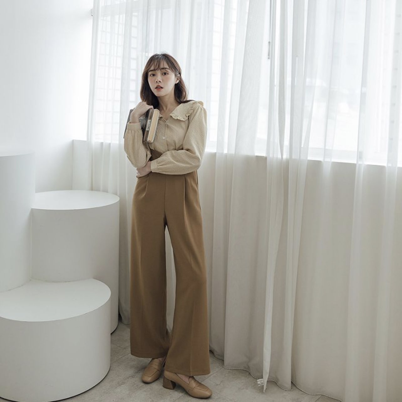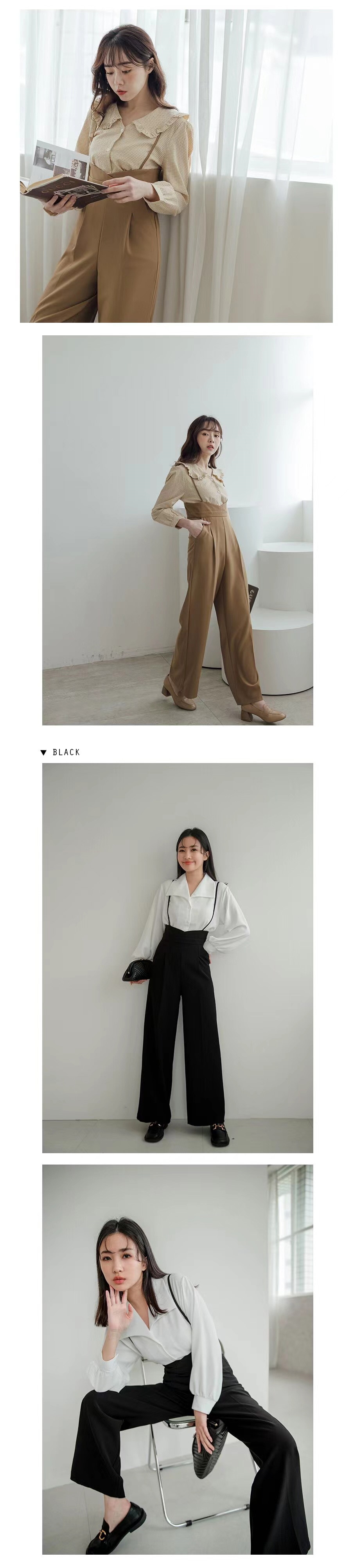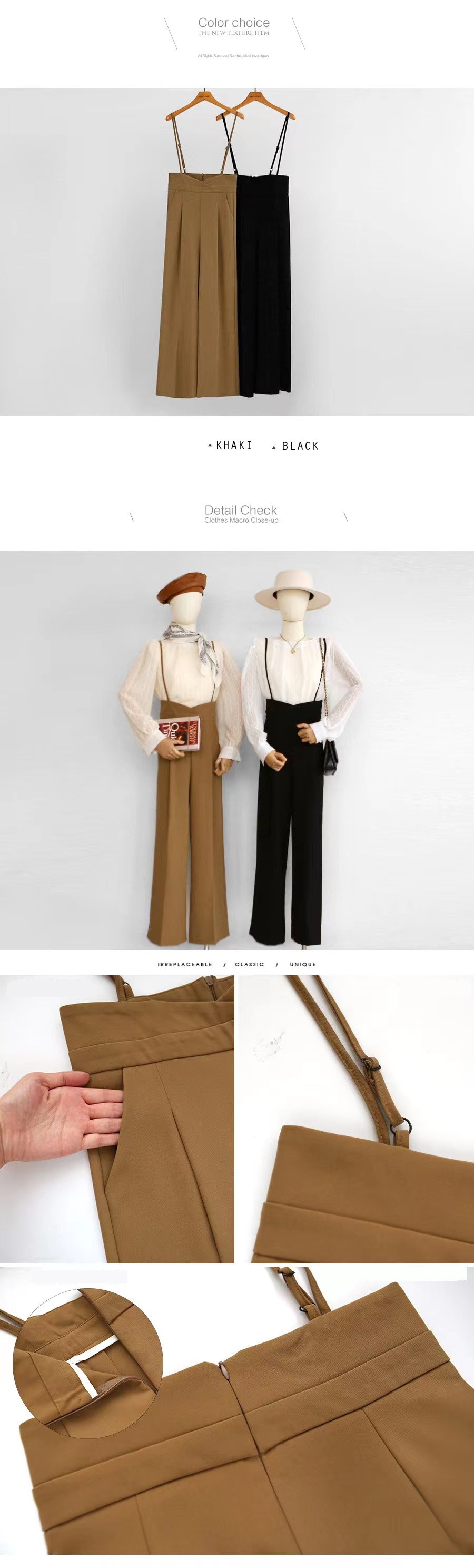 韓国のレトロな洋風スリムで用途の広いカジュアルなワイドレッグサスペンダーパンツルーズジャンプスーツ オールインワン