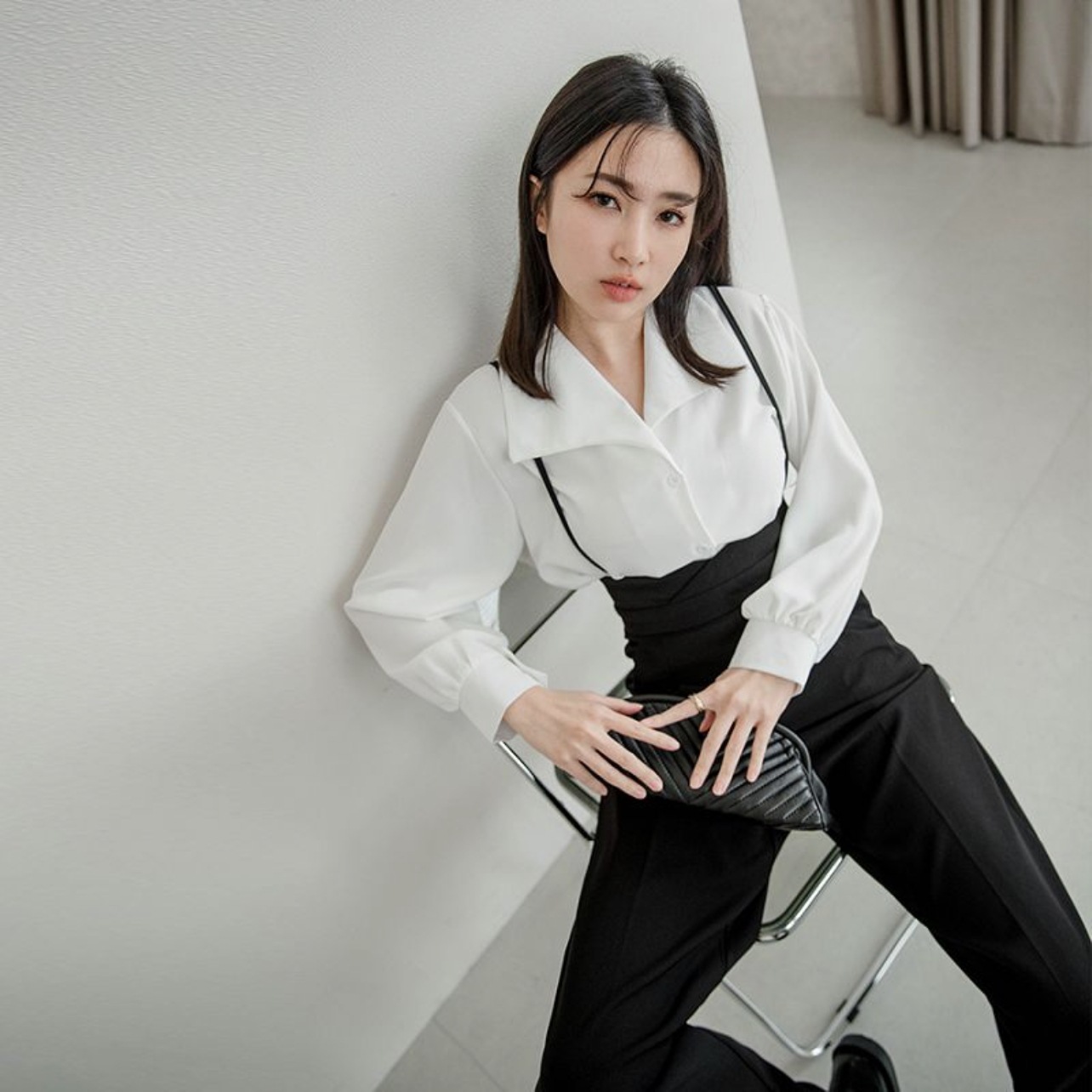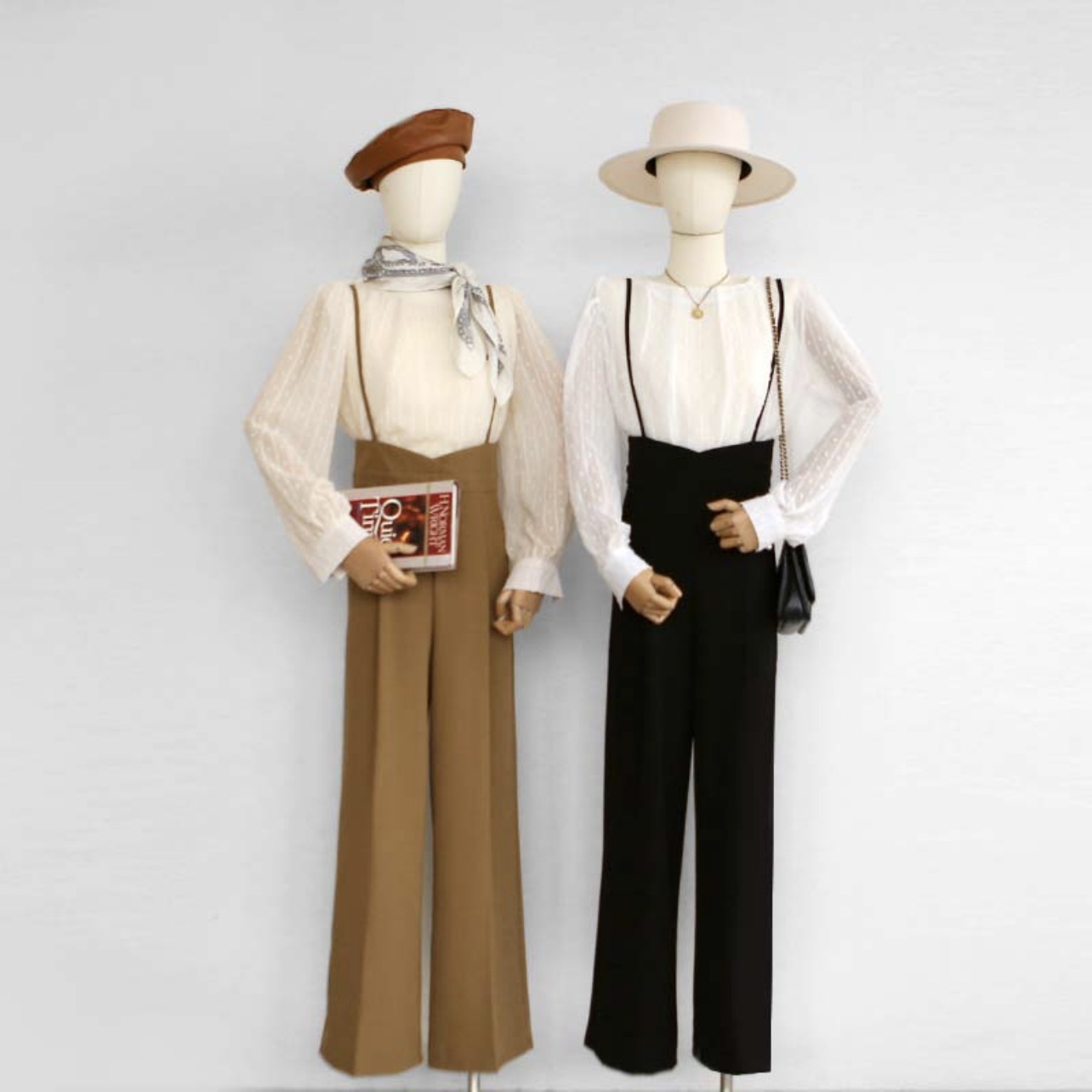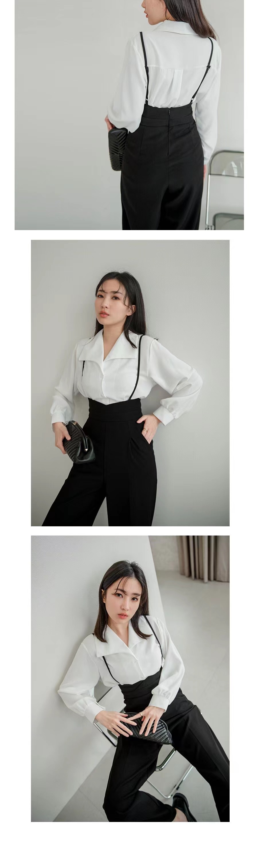 韓国のレトロな洋風スリムで用途の広いカジュアルなワイドレッグサスペンダーパンツルーズジャンプスーツ オールインワン