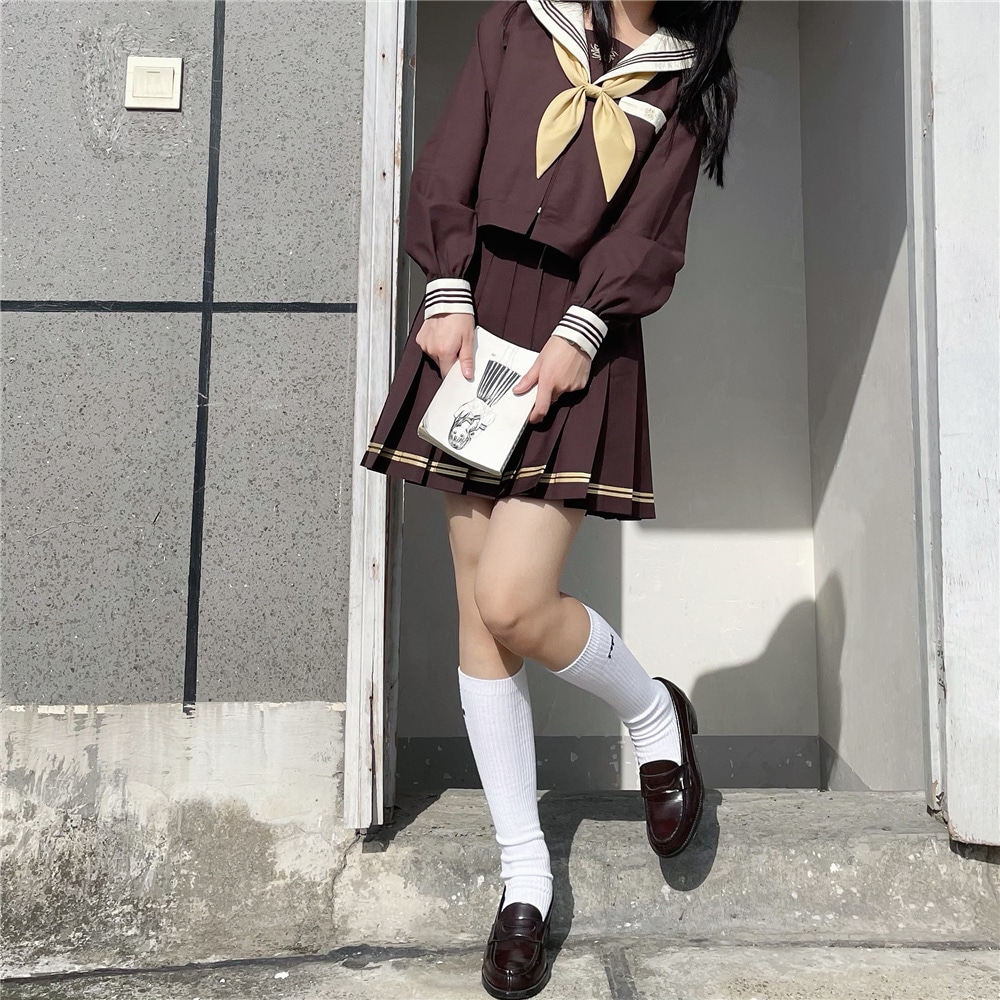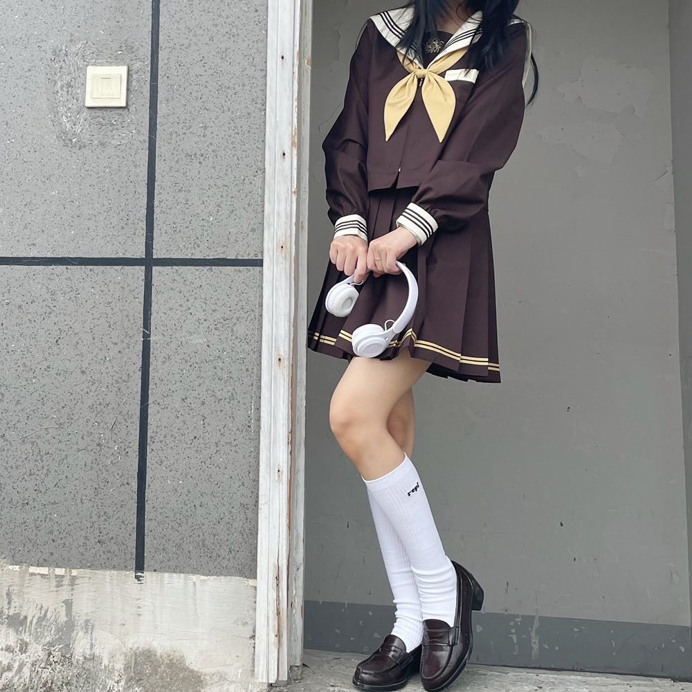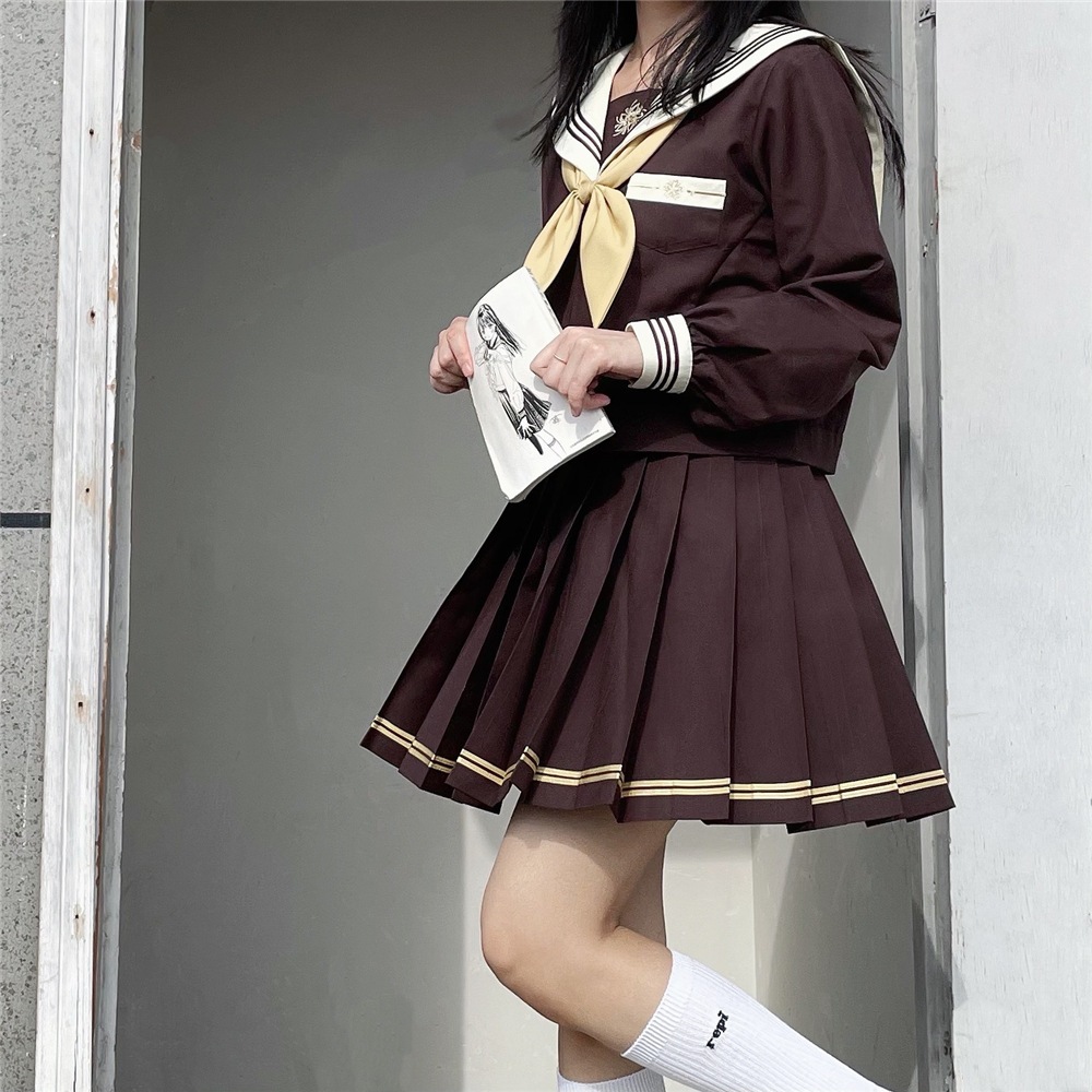 春 夏 通学 制服 セーラー服 ブラウン 3点セット 長袖 半袖 スカート 秋 JK 制服 スカート 43cm プリーツスカート スクール 制服 女子高生 トップス 卒業式 入学式 学園祭 文化祭