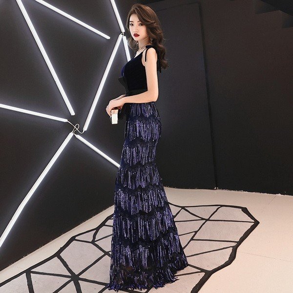 2021春パーティードレス 姫系 スパンコール 花嫁ロングドレス お呼ばれ 結婚式 誕生日 ロング丈 ドレス