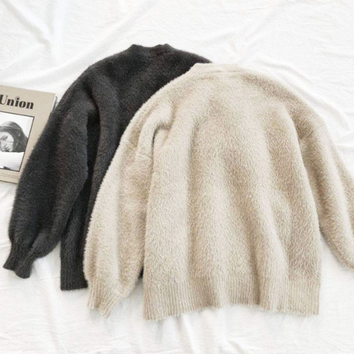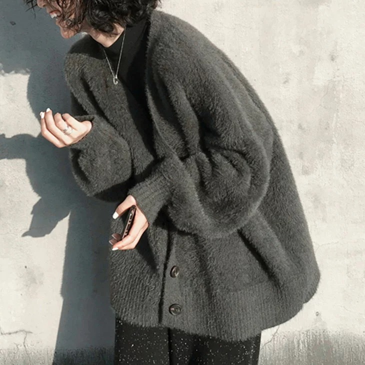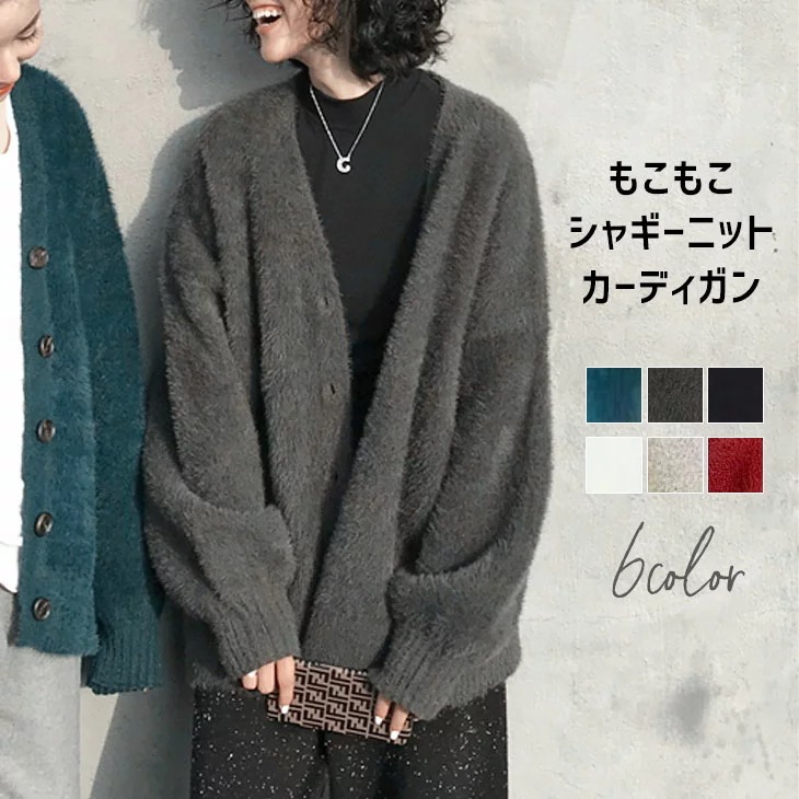 シャギーニットVネックカーディガンもこもこふわふわ長袖レディース防寒あったかアウター羽織り可愛い無地ゆったり大きめ長め丈韓国ファッション ニット