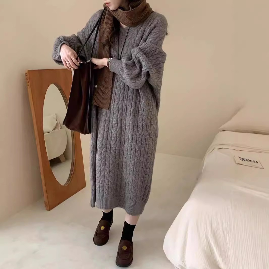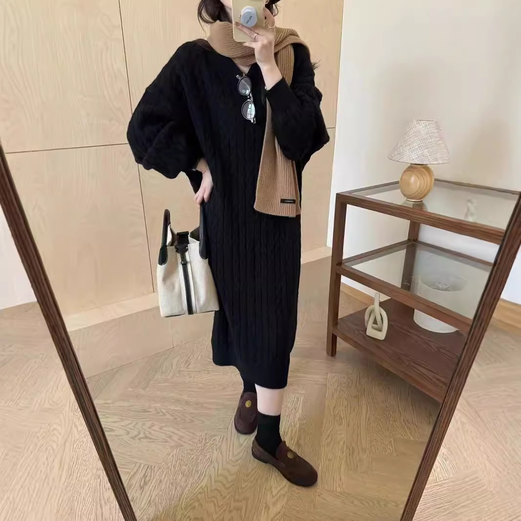 ワンピース レディース じゅんしょくVネック韓国風 ニットワンピース フェミニン エレガント 秋冬上品 大人 お洒落 気質 通勤OL 長袖ロング マキシ丈ワンピ