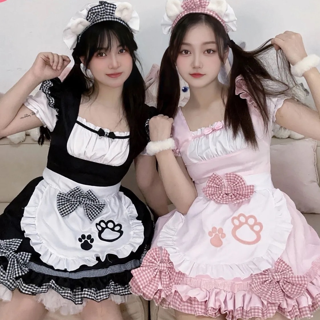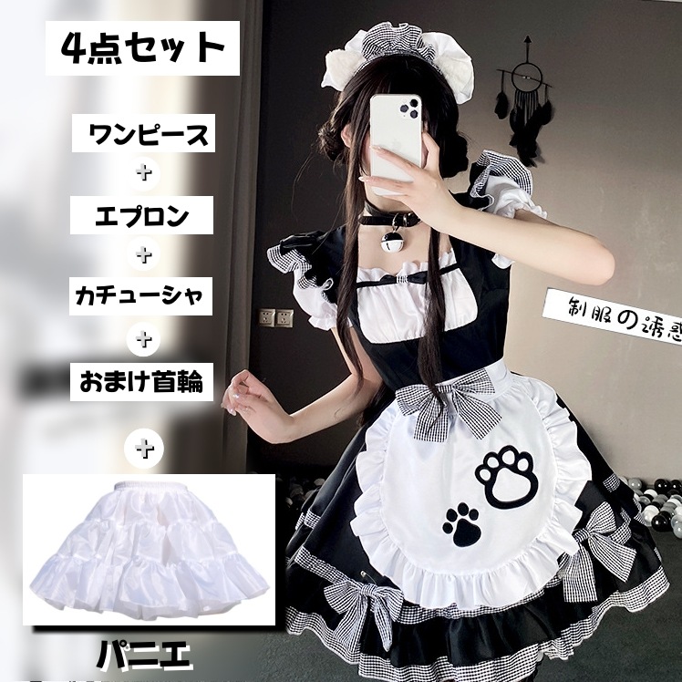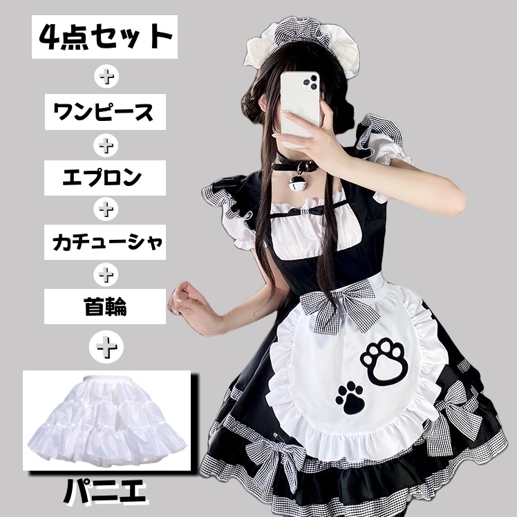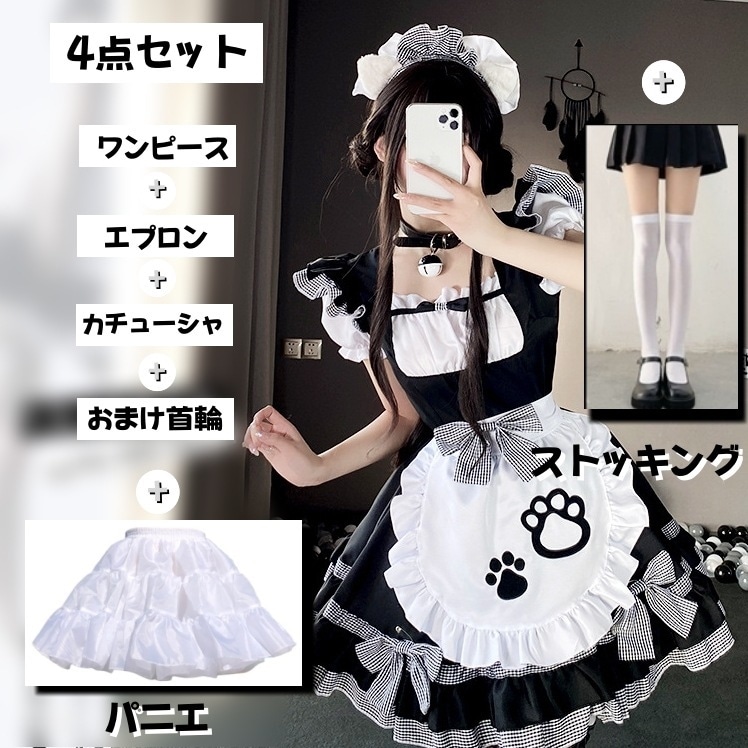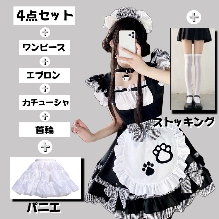新型メイド服セット 可愛いロリータ コスチューム 白黒メイド服 ハロウィン コスプレ 仮装 サイズ ワンピース マルチスタイルセット クリスマス衣装