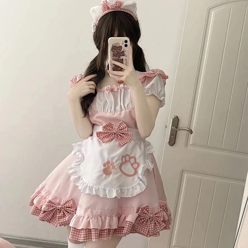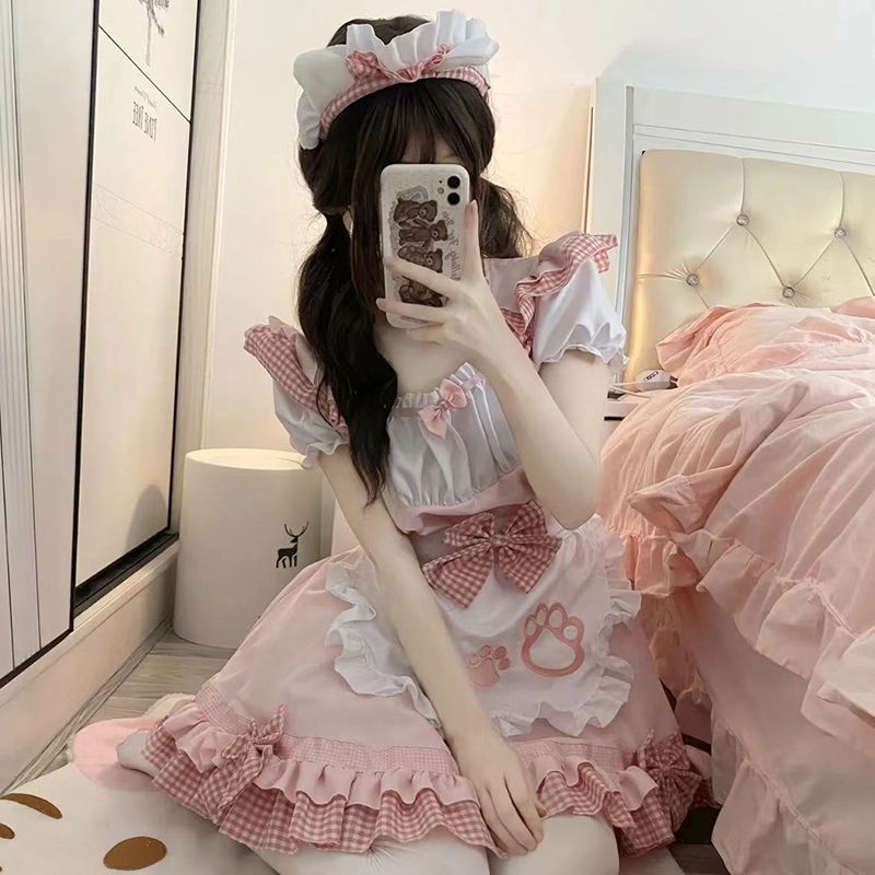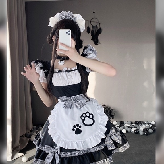 カラー: ブラック 4点セット:(ワンピース+エプロン+カチューシャ+首輪) ピンク 4点セット:(ワンピース+エプロン+カチューシャ+首輪) 待更新