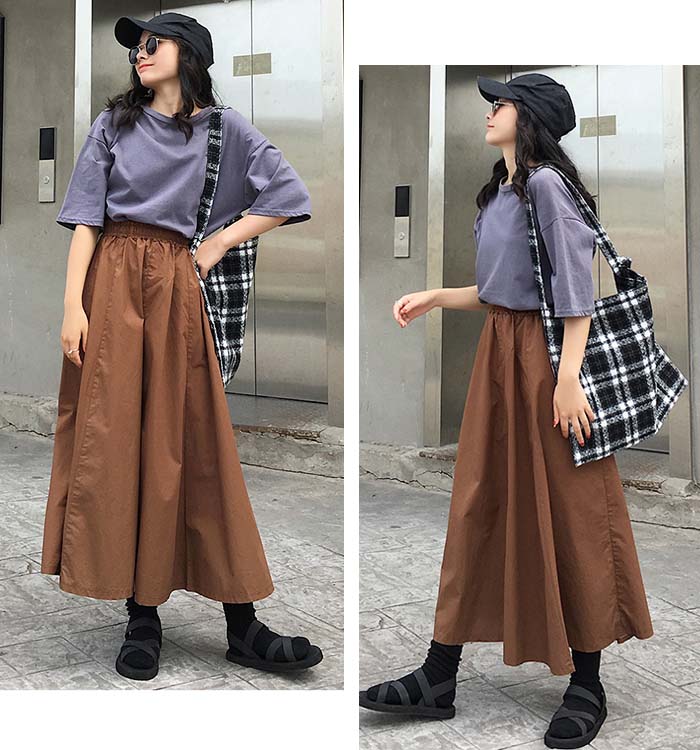 スカート ロングスカート Aラインスカート ウエストゴム ゴム 大きいサイズ 体型カバー フレアスカート フレア ロング マキシスカート マキシ Aライン 春秋