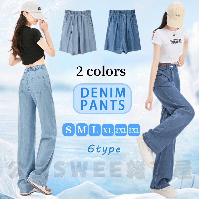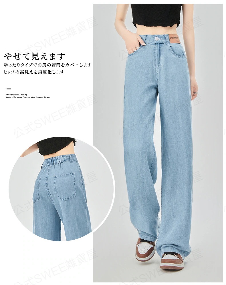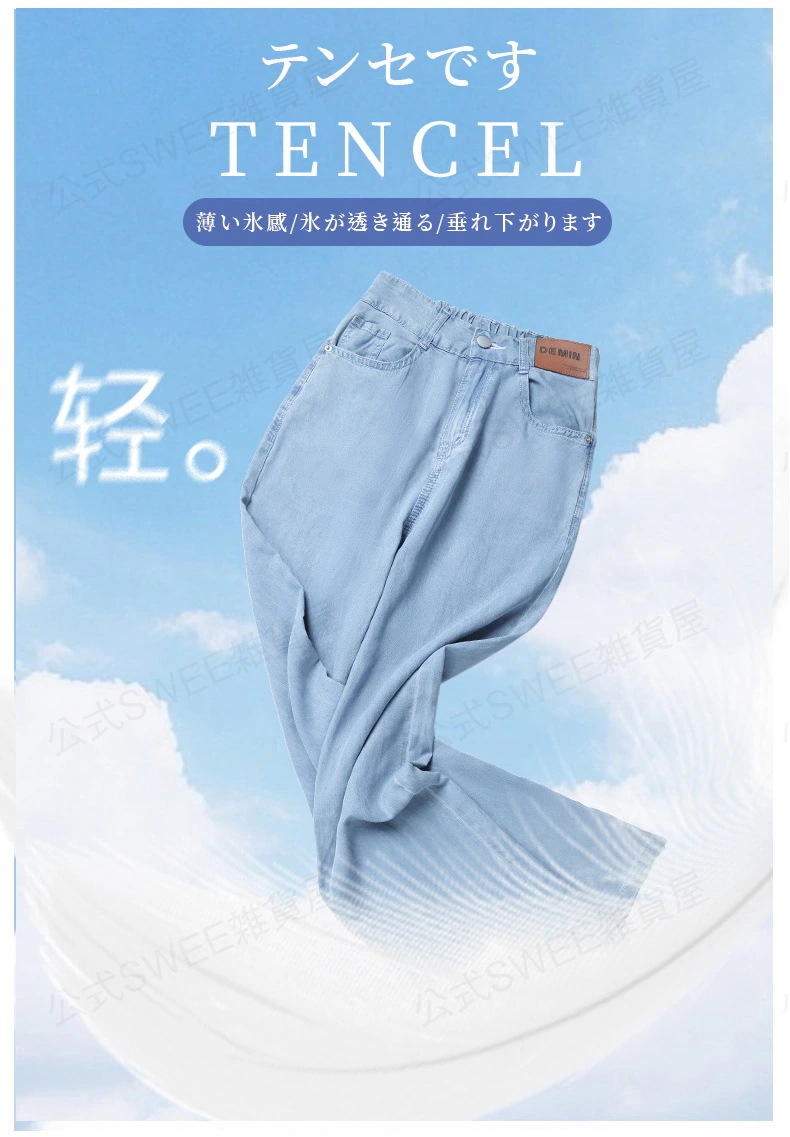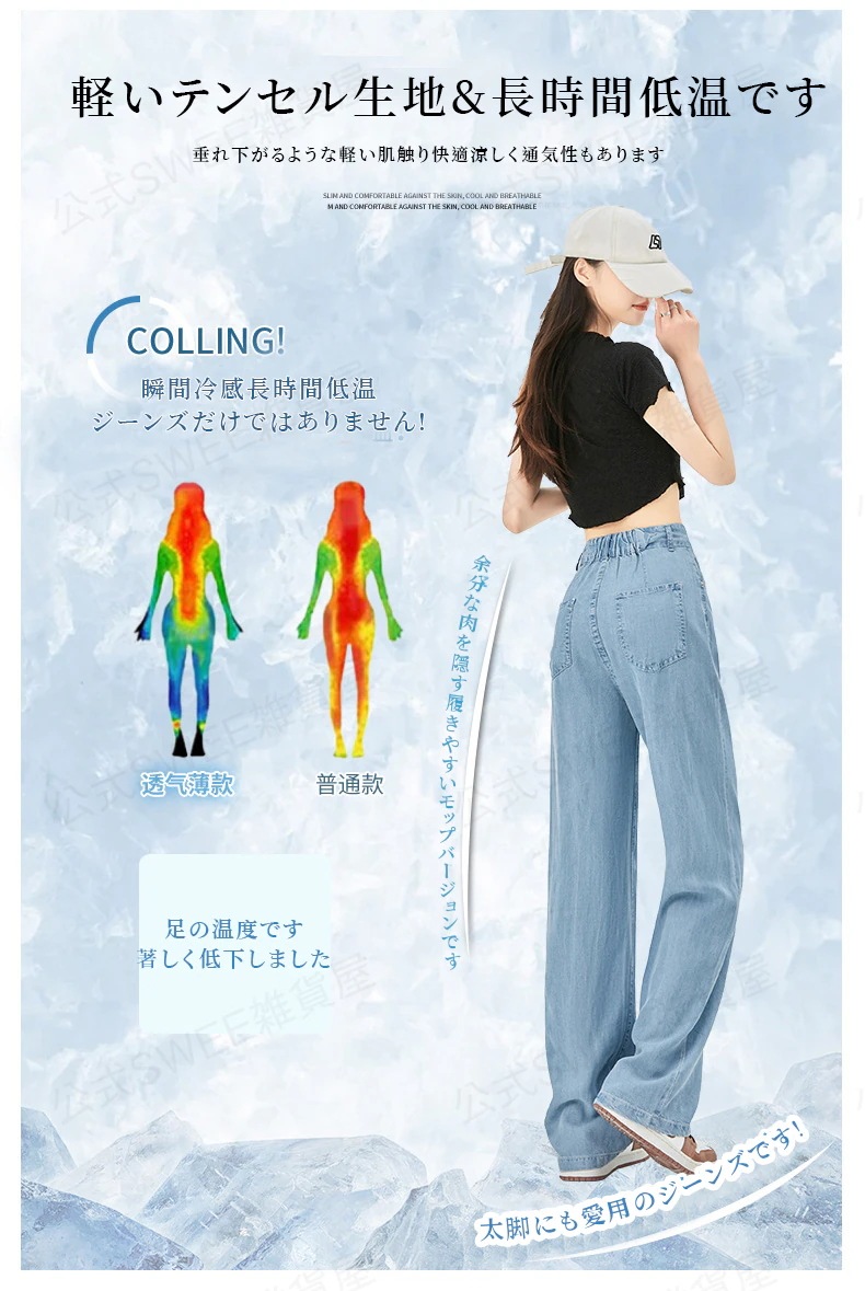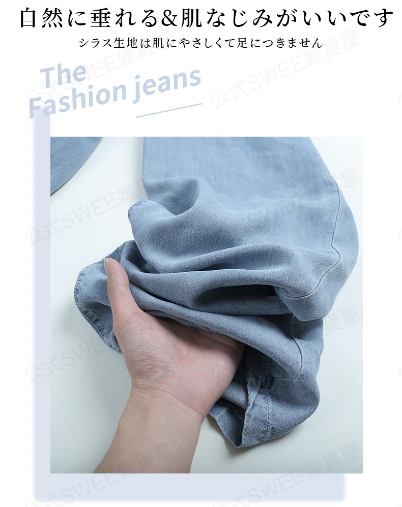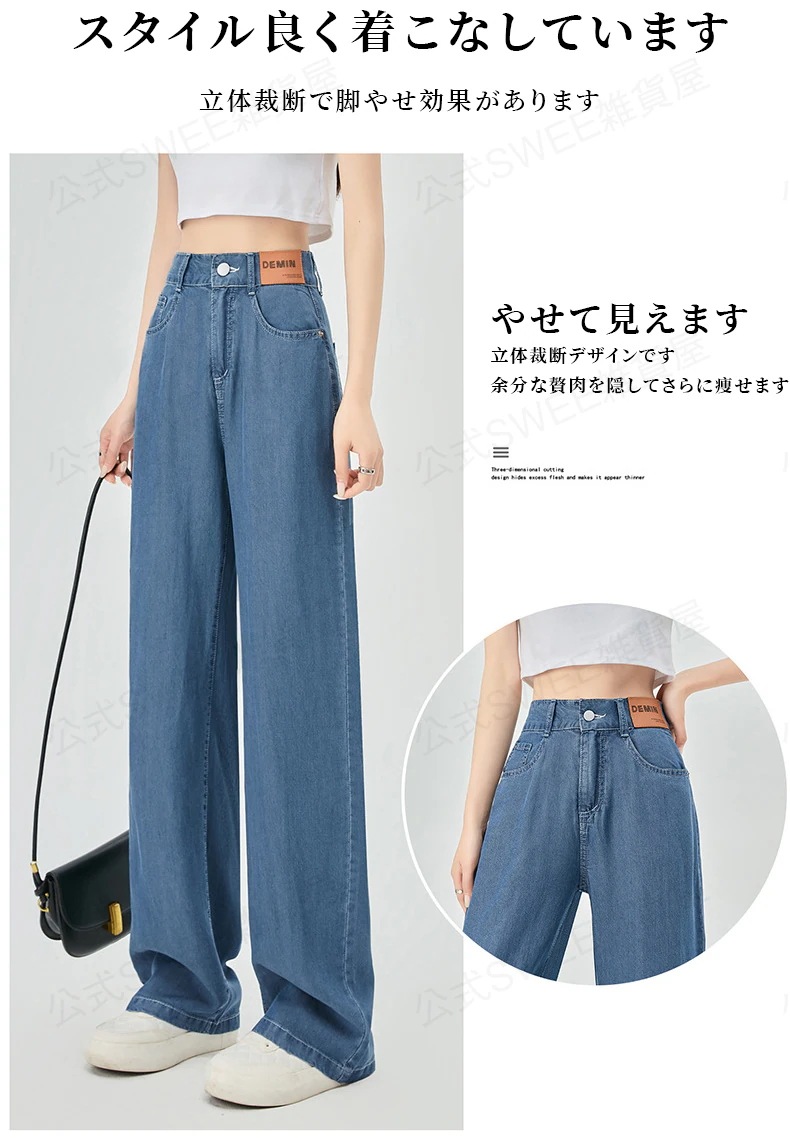 2024夏 接触冷感 柔らかい デニム パンツ ワイドパンツ ジーンズ パンツ ティアードジーンズ ハイウエストスリムスリムストレートダウン感アイススリムワイドパンツ