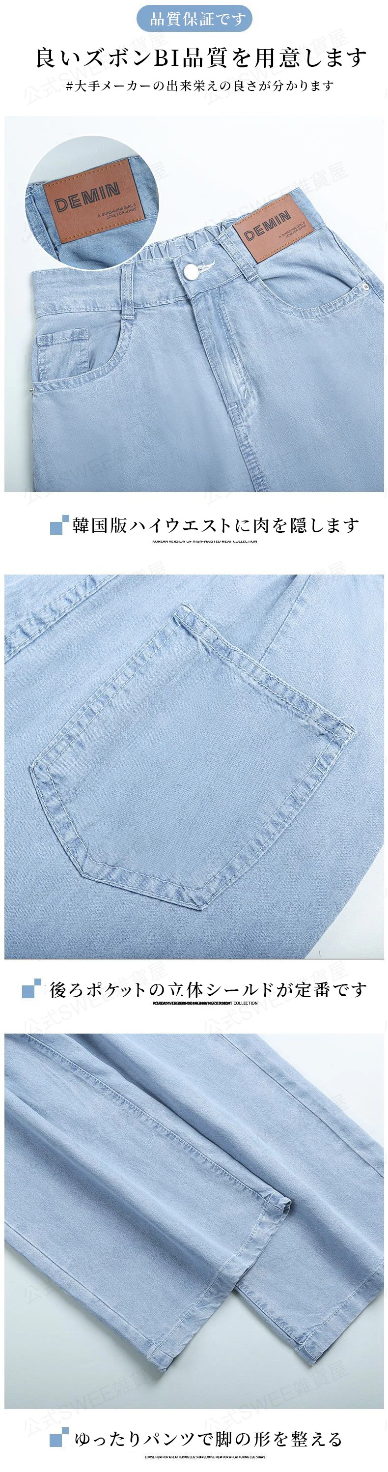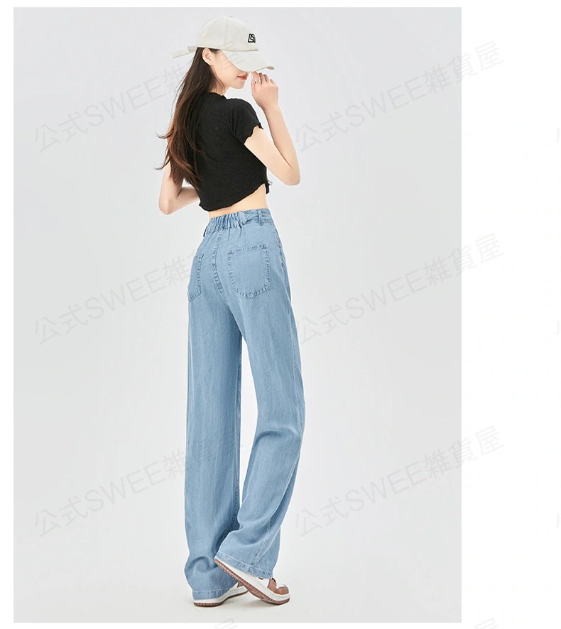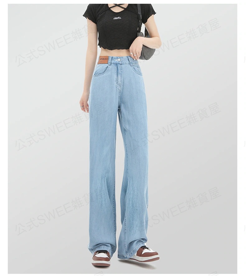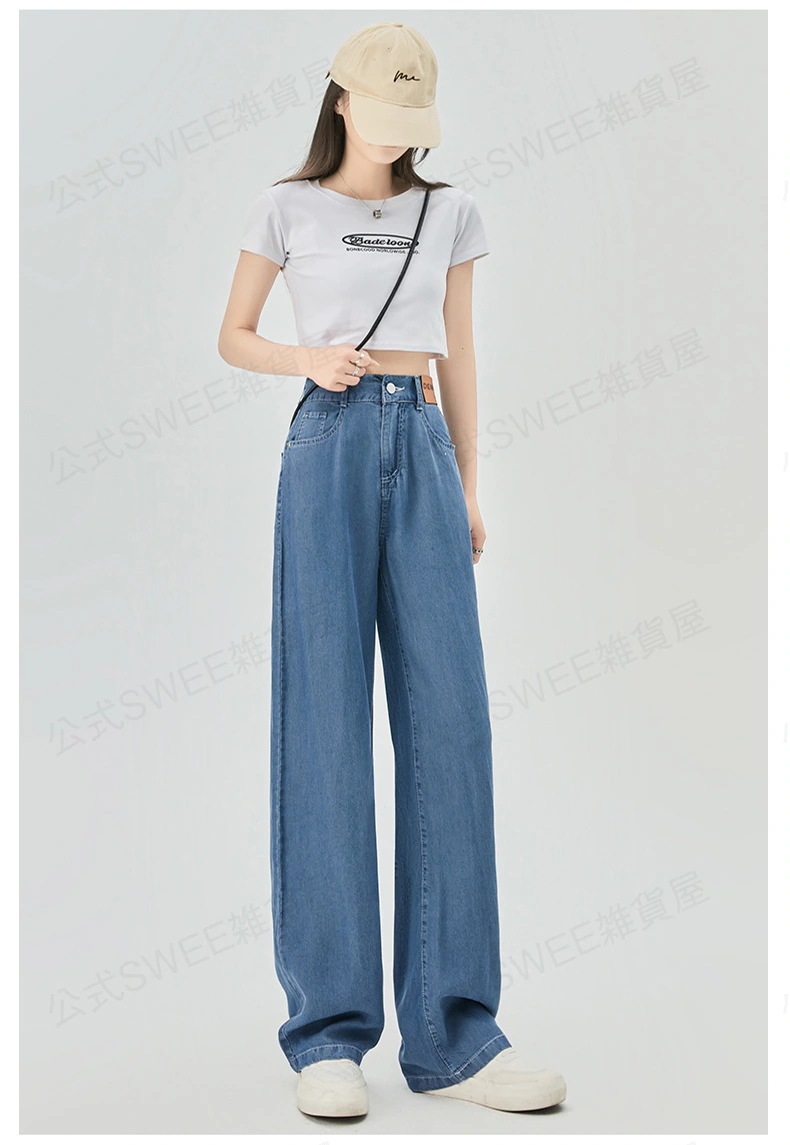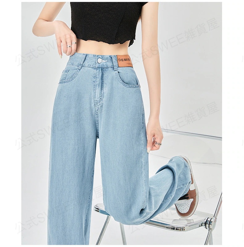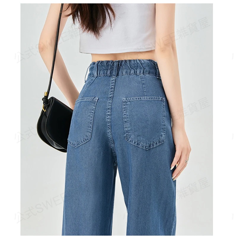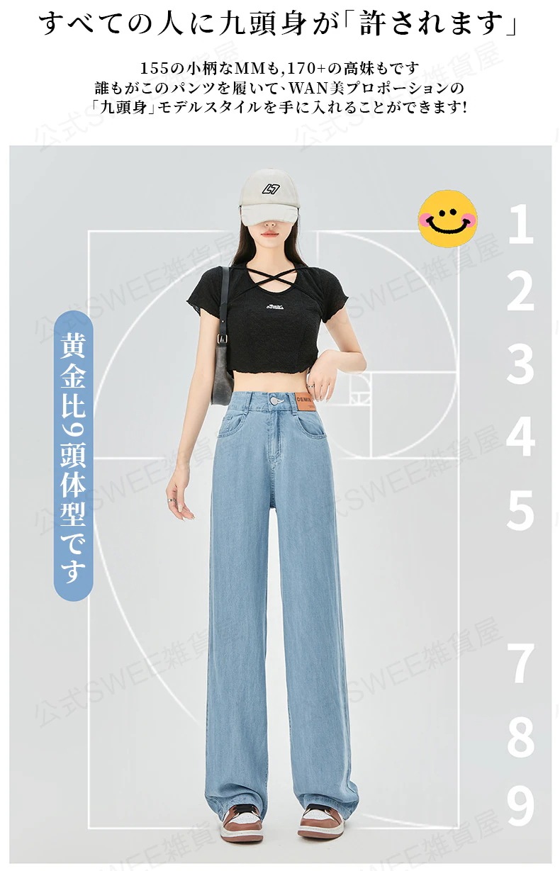 2024夏 接触冷感 柔らかい デニム パンツ ワイドパンツ ジーンズ パンツ ティアードジーンズ ハイウエストスリムスリムストレートダウン感アイススリムワイドパンツ