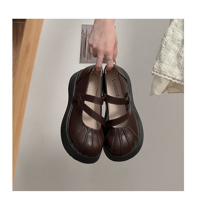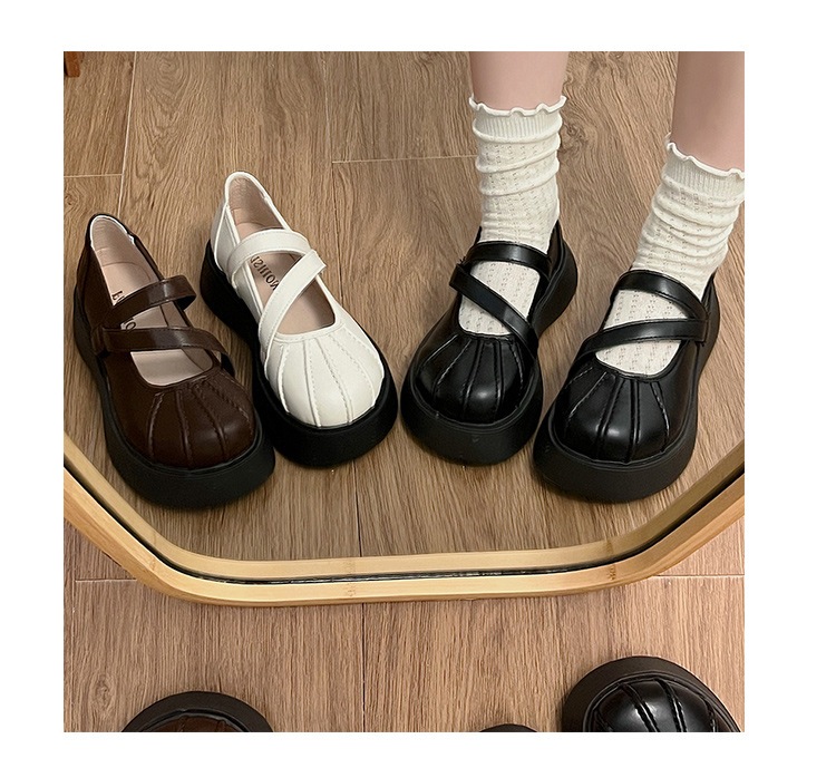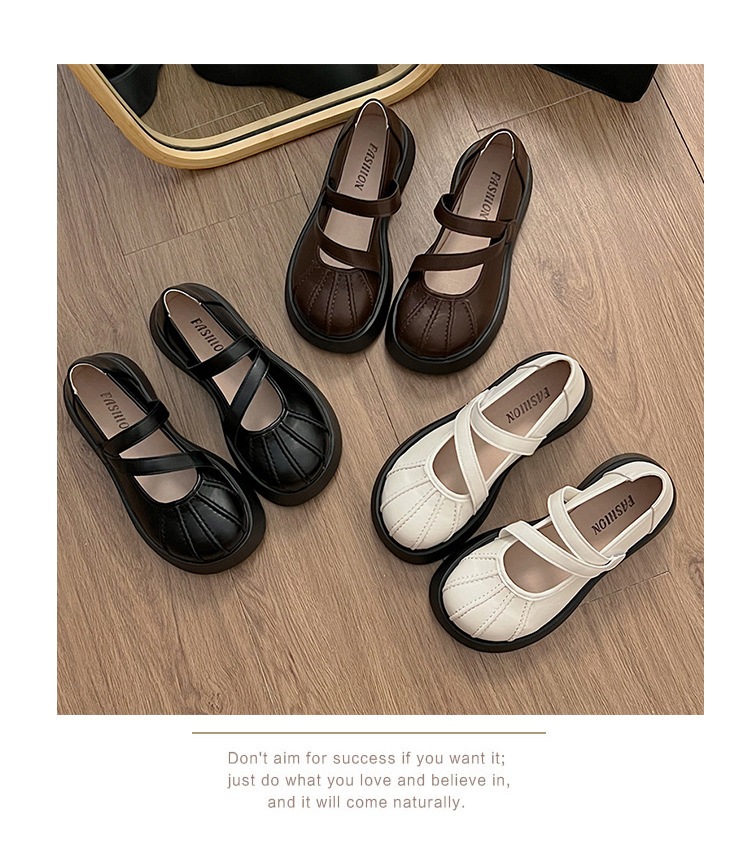 フランス語 一言バックルメリージェーンシューズ 婦人靴 新作 厚底増加 何百もの小さな革の靴 シークレットインソール