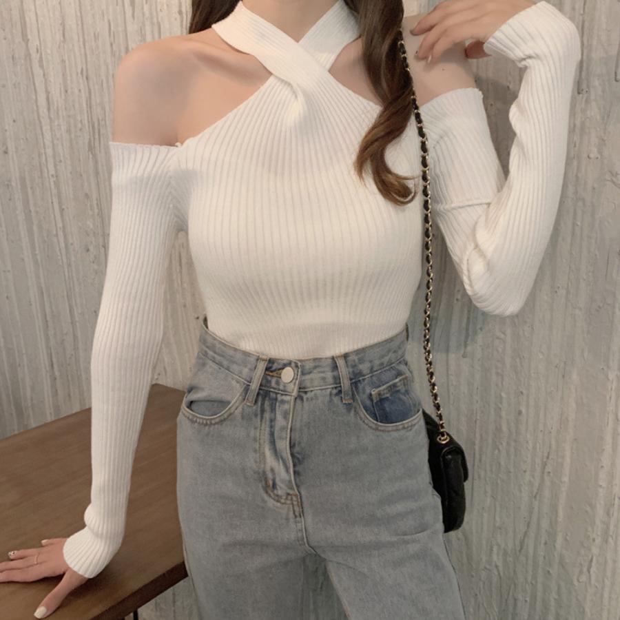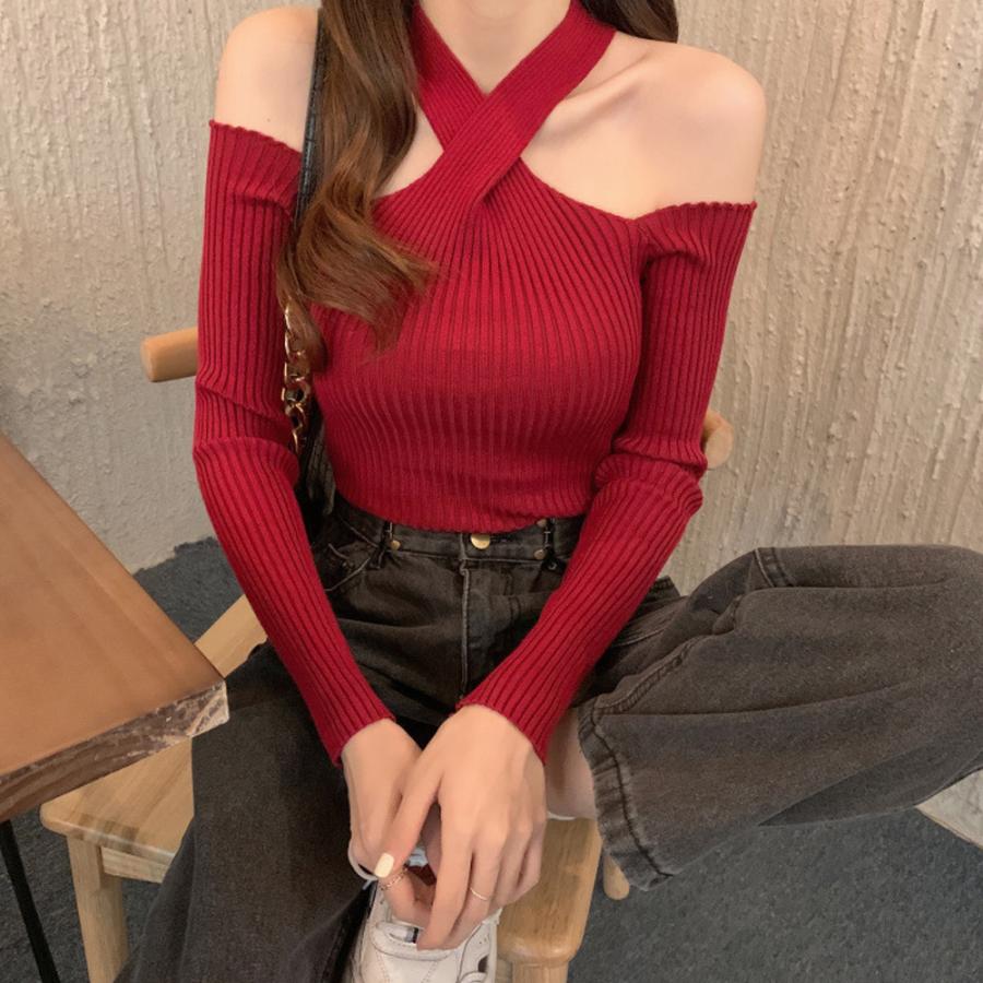 ベーシックニット ニットトップス ホルターネック 肩出し人气 新作 カーディガン
