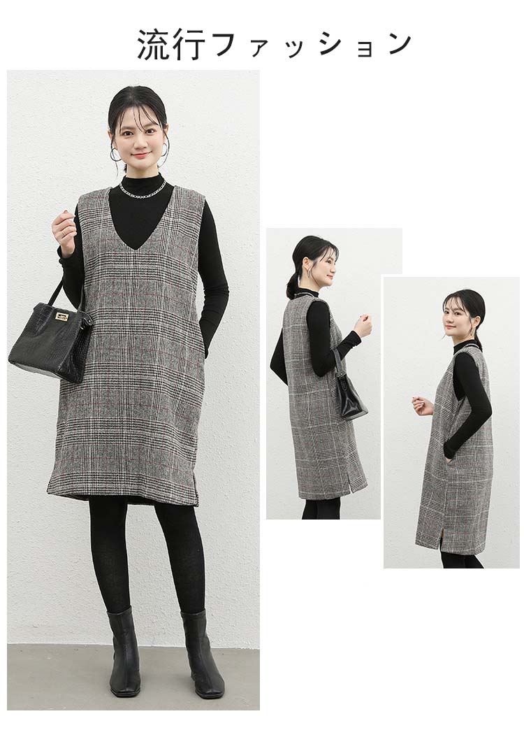 春の新作ワンピース ノースリーブ Vネック カジュアル スリット スタイルアップ 女性ファッション ワンピース ニットワンピ