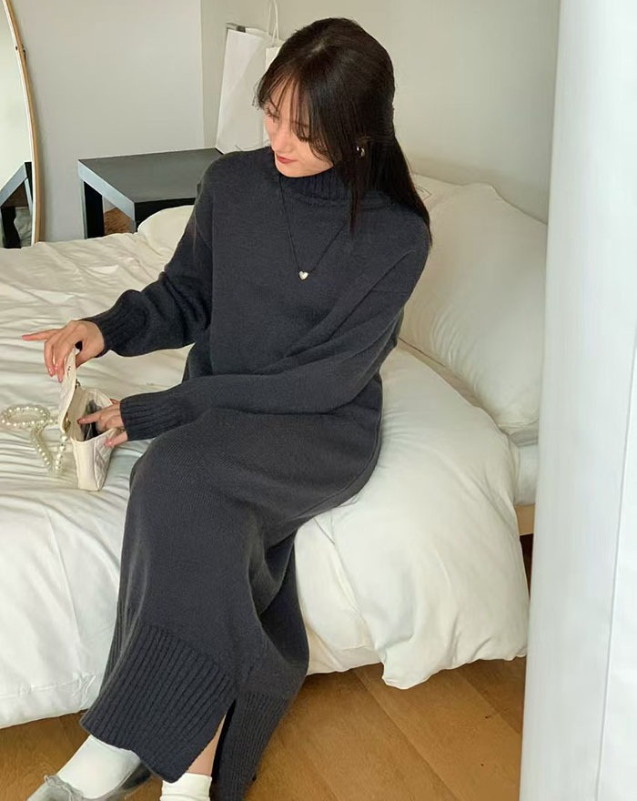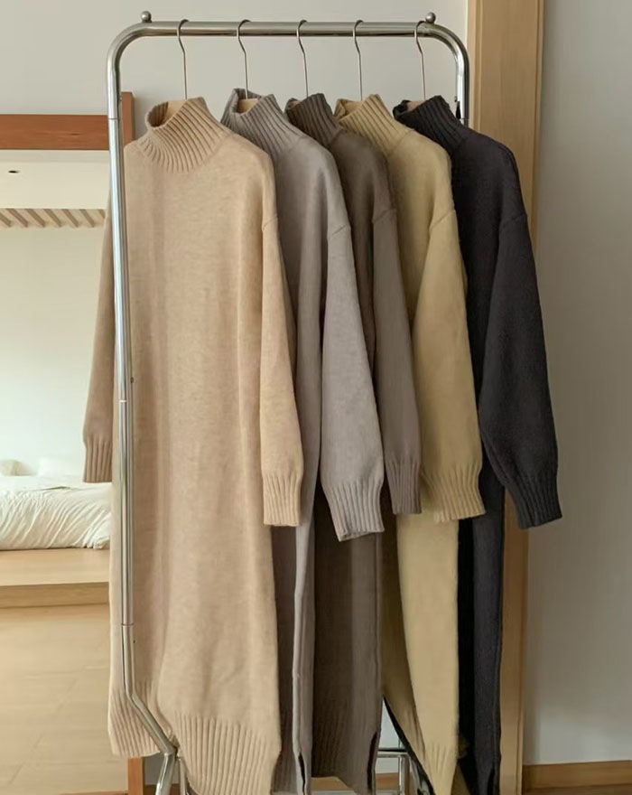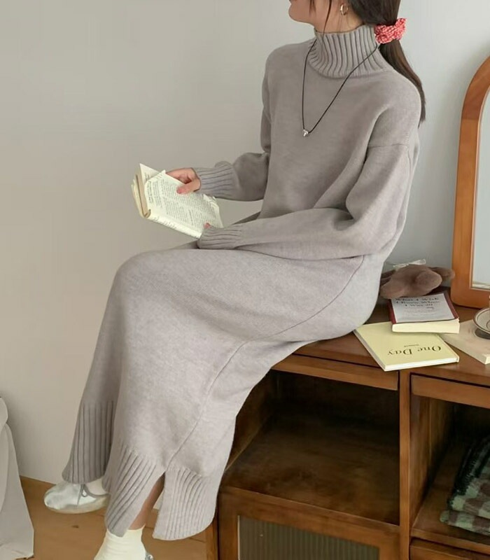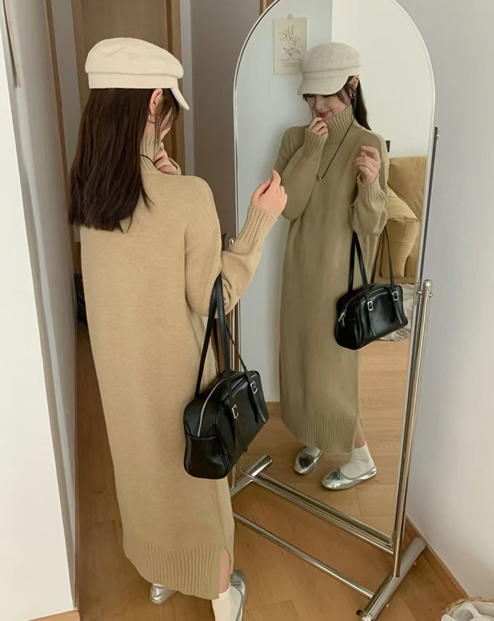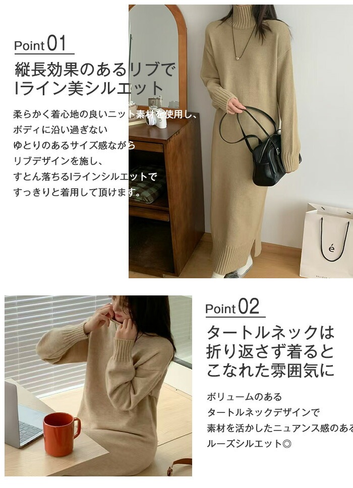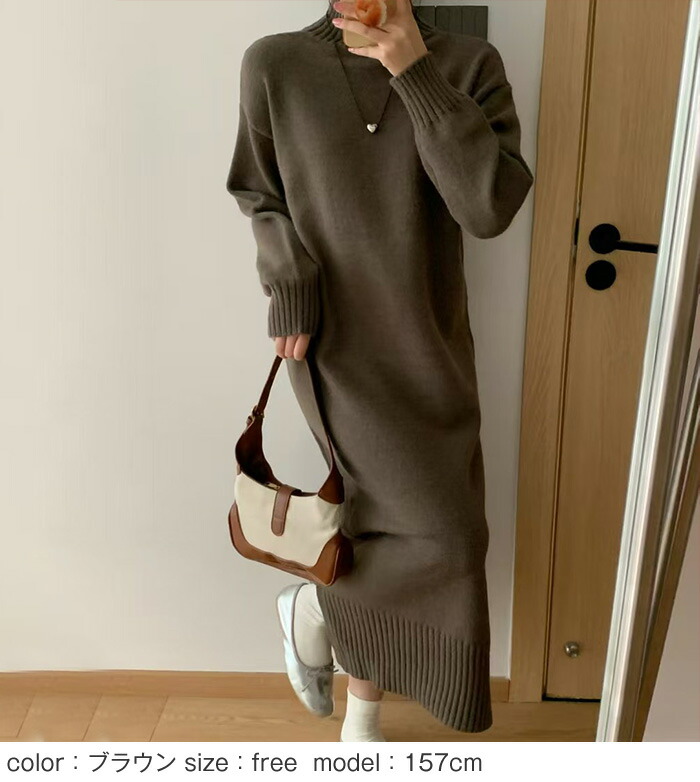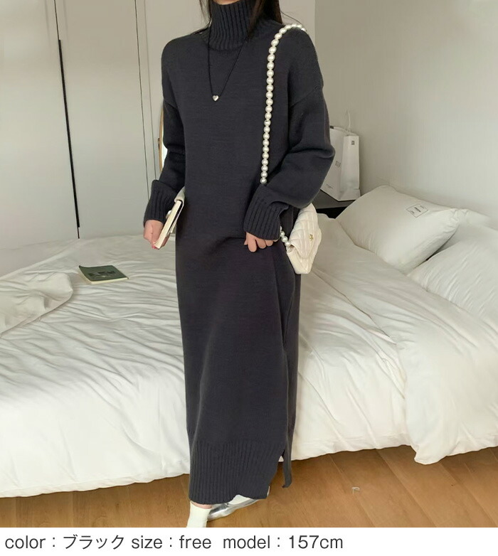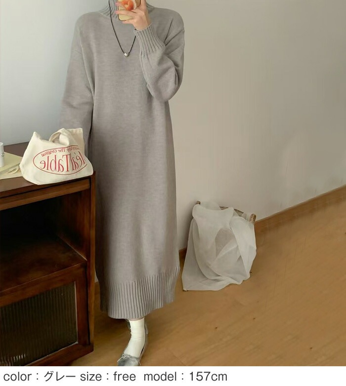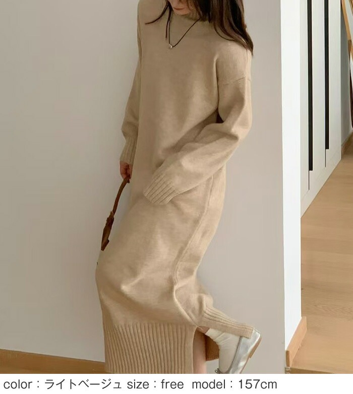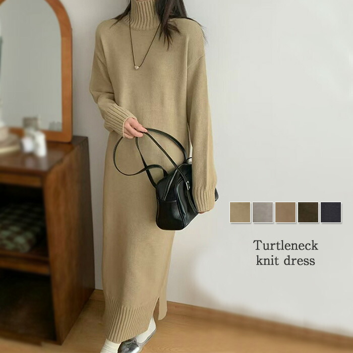 ニットワンピース ニット ワンピース タートルネック ハイネック 長袖 ロングワンピース ロング マキシ丈 レディース 無地 リブニット きれいめ レイヤード 体型カバー 着痩せ 大きめ 大きいサイズ
