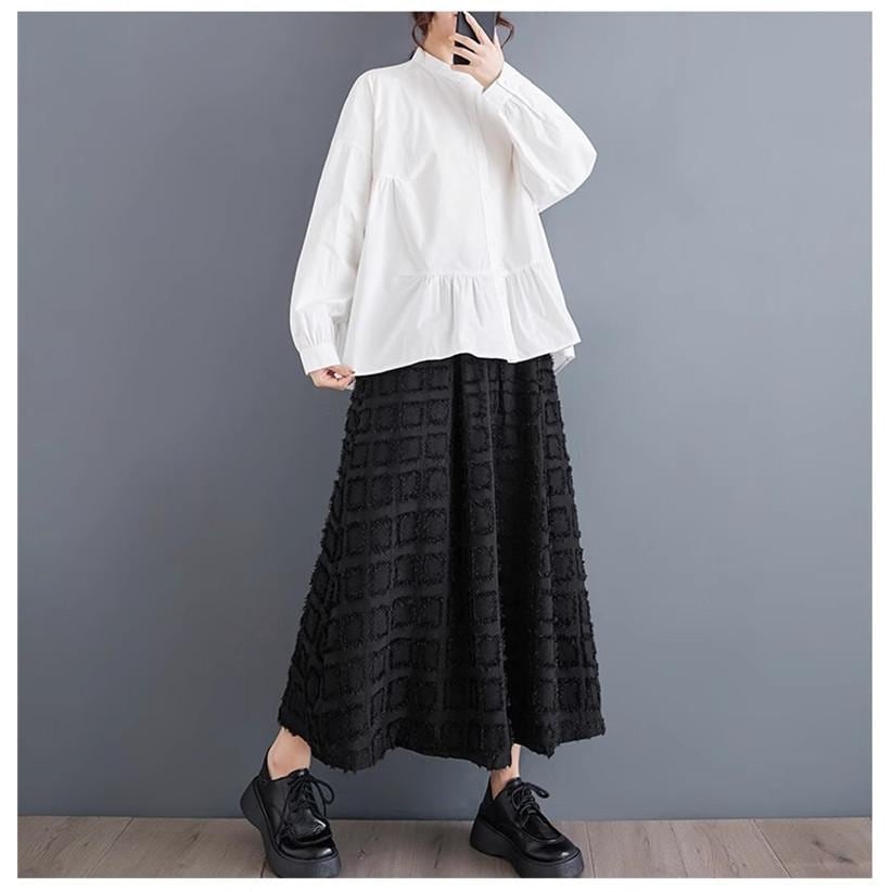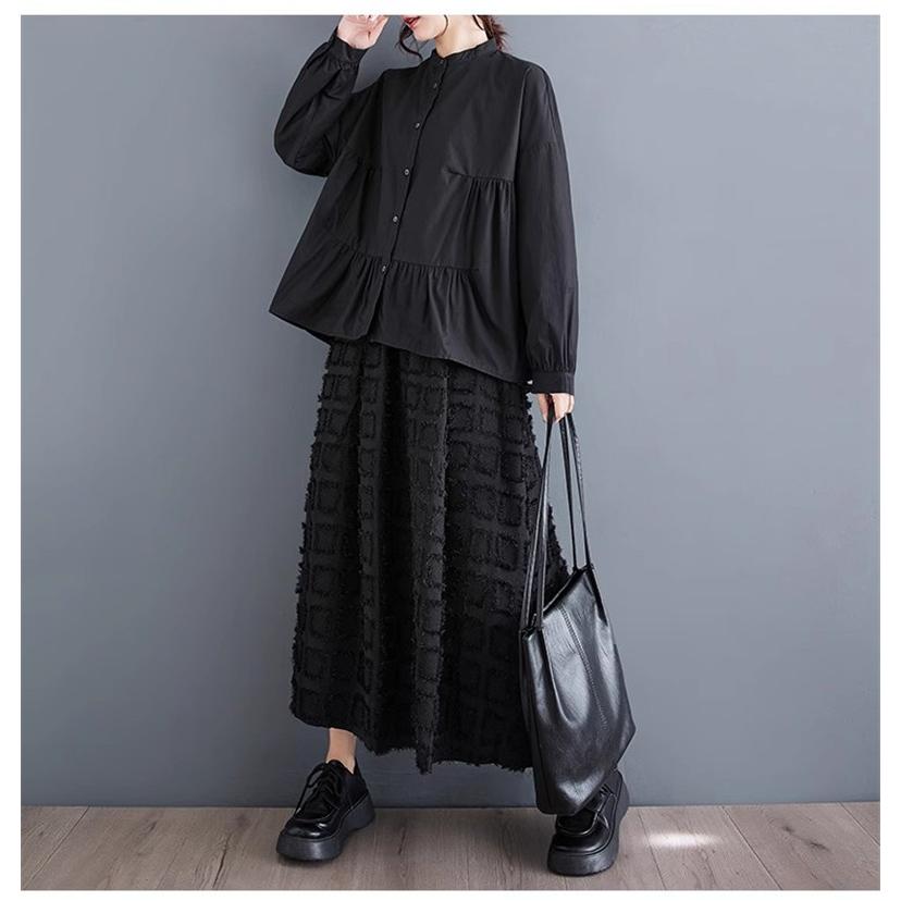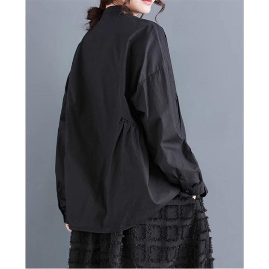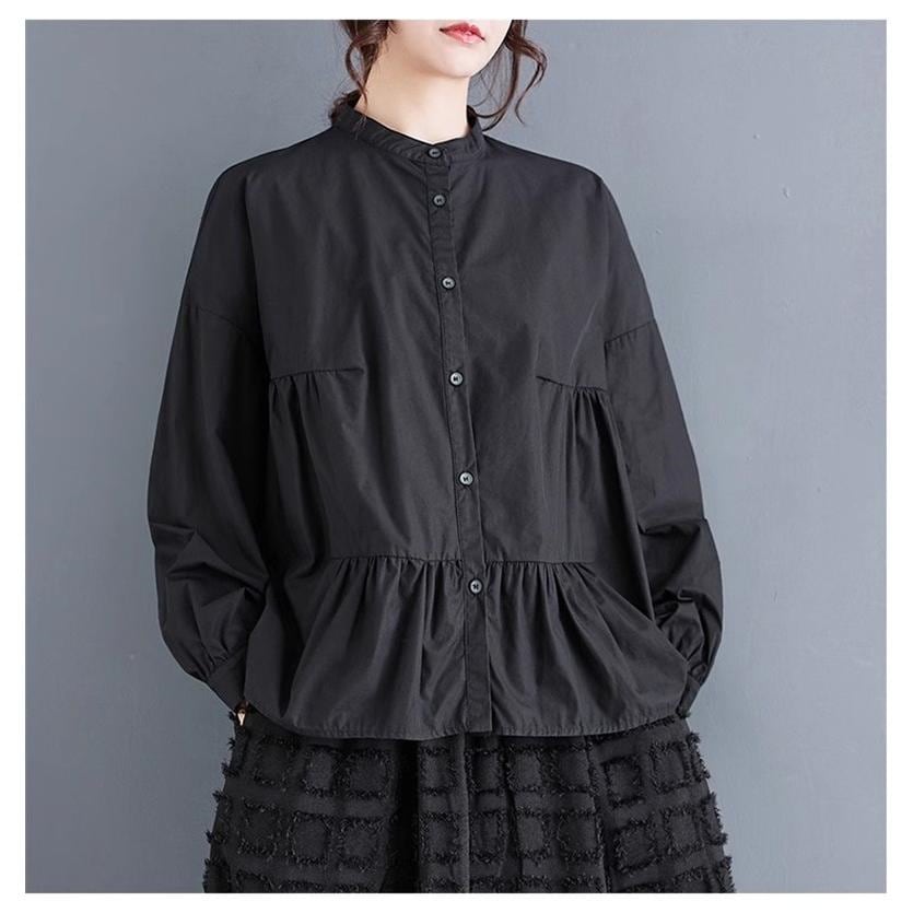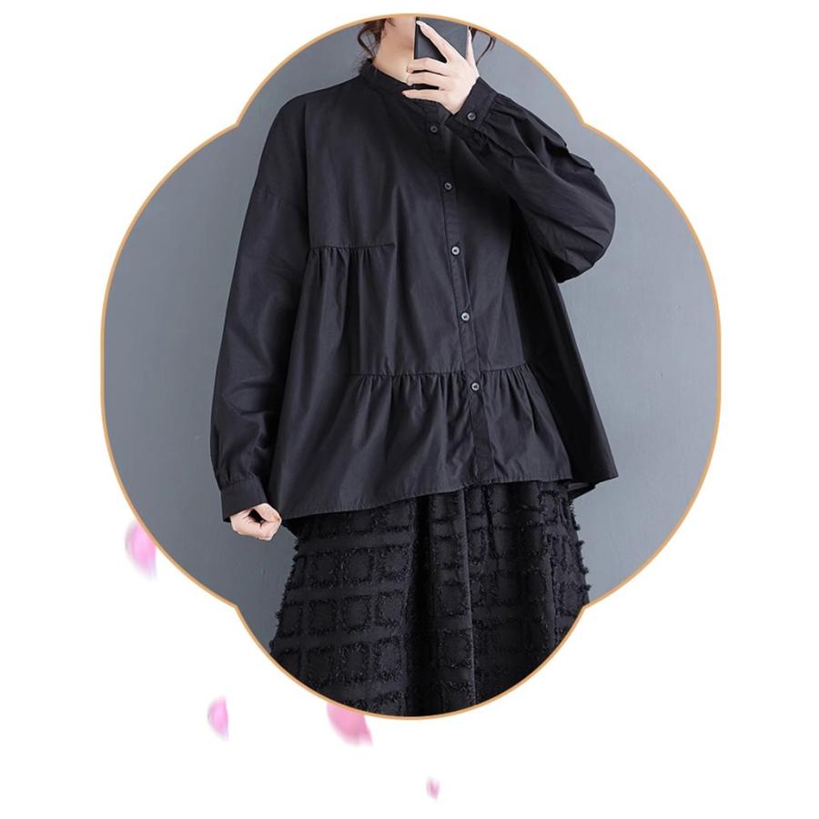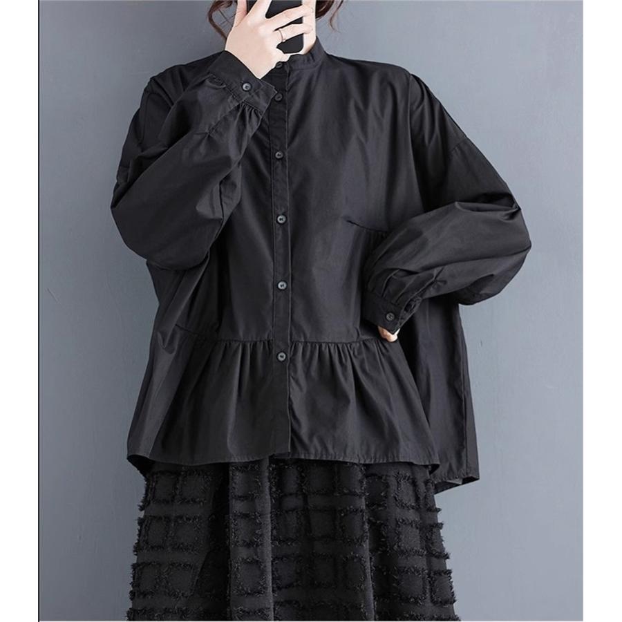 レディース トップス ゆったり トレンド 春シャツ 長袖 ボリュームスリーブ フレアブラウス エレガントに仕上げ スタンドカラー きれいめ 体型カバー