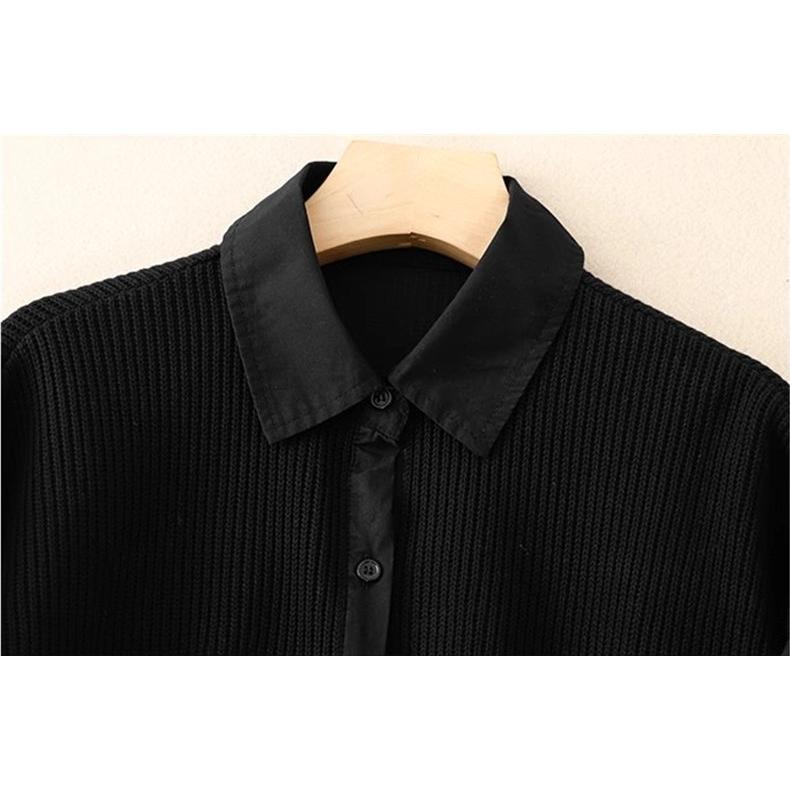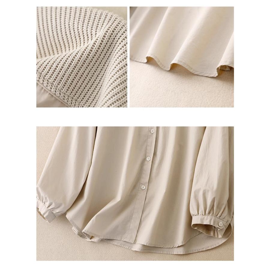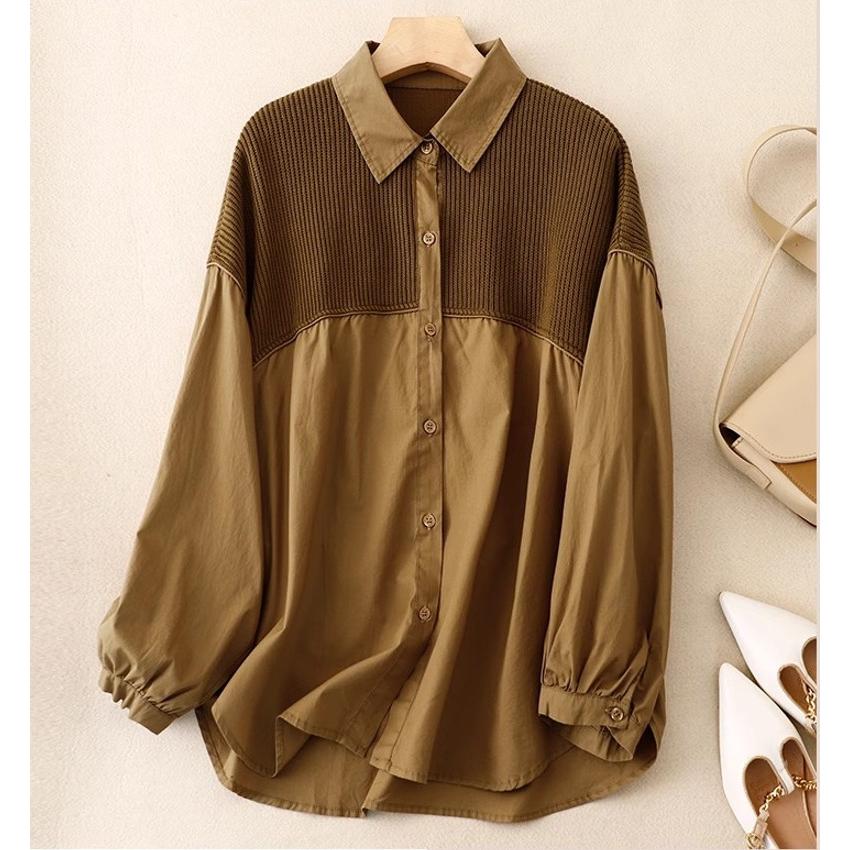 ニット ブラウス レディース 春トップス 長袖 異素材 前開き レディース ラフスタイル 大人にふさわしい風合いも魅力 折り襟 レトロ 大きいサイズ