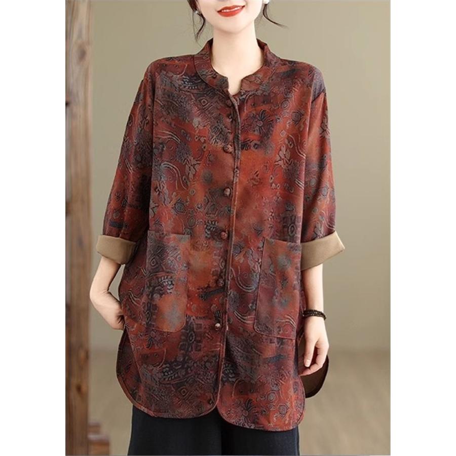 ブラウス シャツ レディース 春トップス 長袖 スタンドカラー 花柄 フラワー コーデの幅も広がる 大きめのポケットも 羽織り シルエットの変化も楽しめて