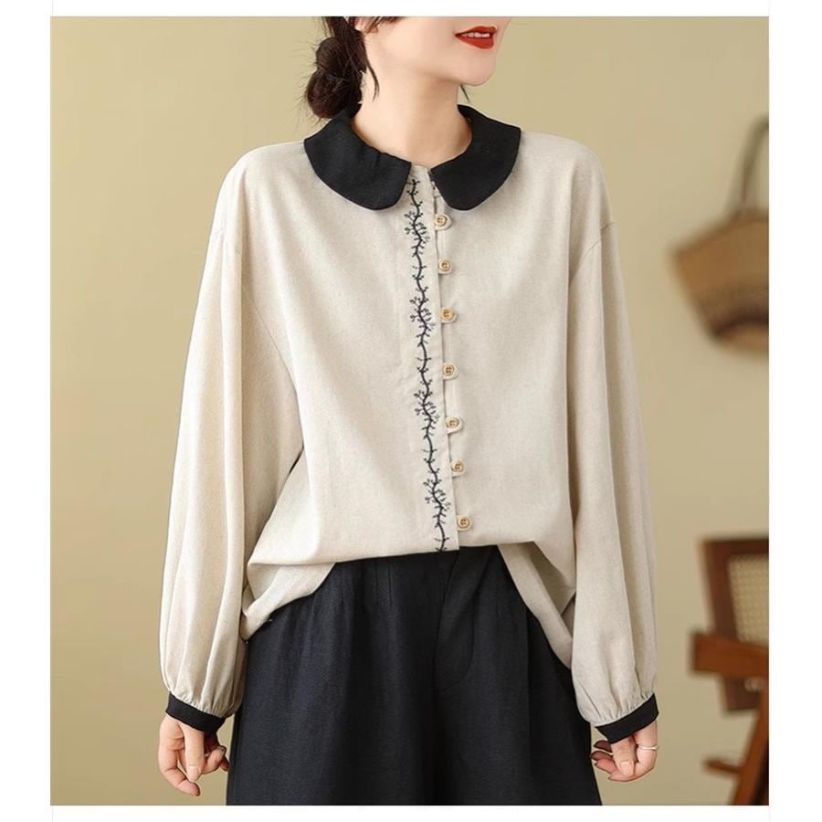 ブラウス シャツ レディース 春トップス 長袖 刺繍 可愛く軽やかに仕上げ スタイルUP 大人女子に人気 トレンド感たっぷり こなれ感もましてお洒落見え