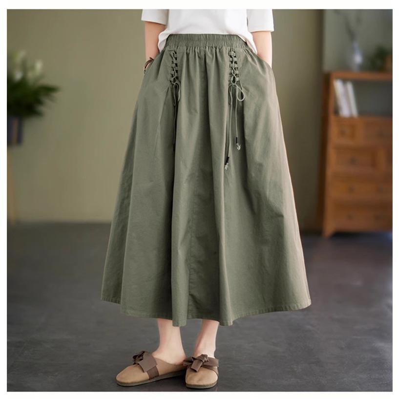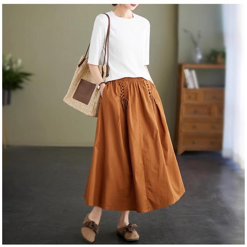 春夏スカート レディース ボトムス ロング丈 綿100% コットン ゆったり 女性らしいアイテムとも好相性 大人可愛い フレアスカート トレンド感たっぷり