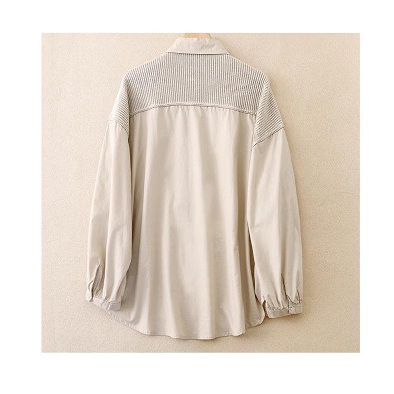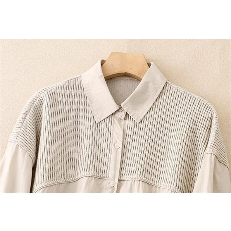 ニット ブラウス レディース 春トップス 長袖 異素材 前開き レディース ラフスタイル 大人にふさわしい風合いも魅力 折り襟 レトロ 大きいサイズ