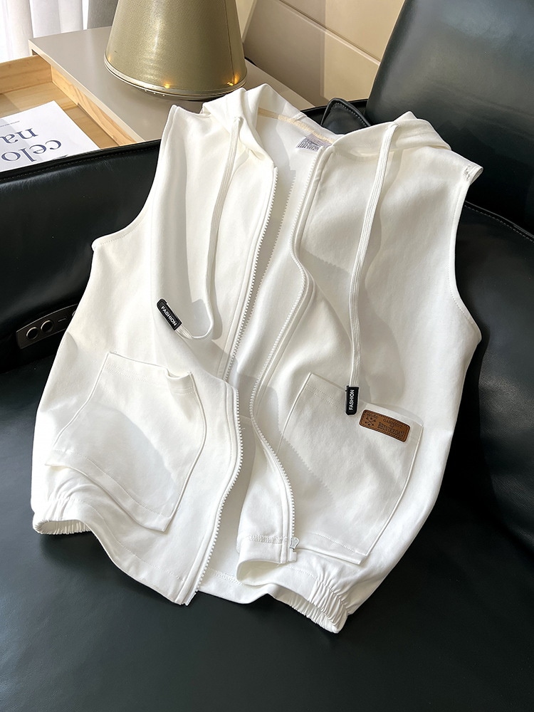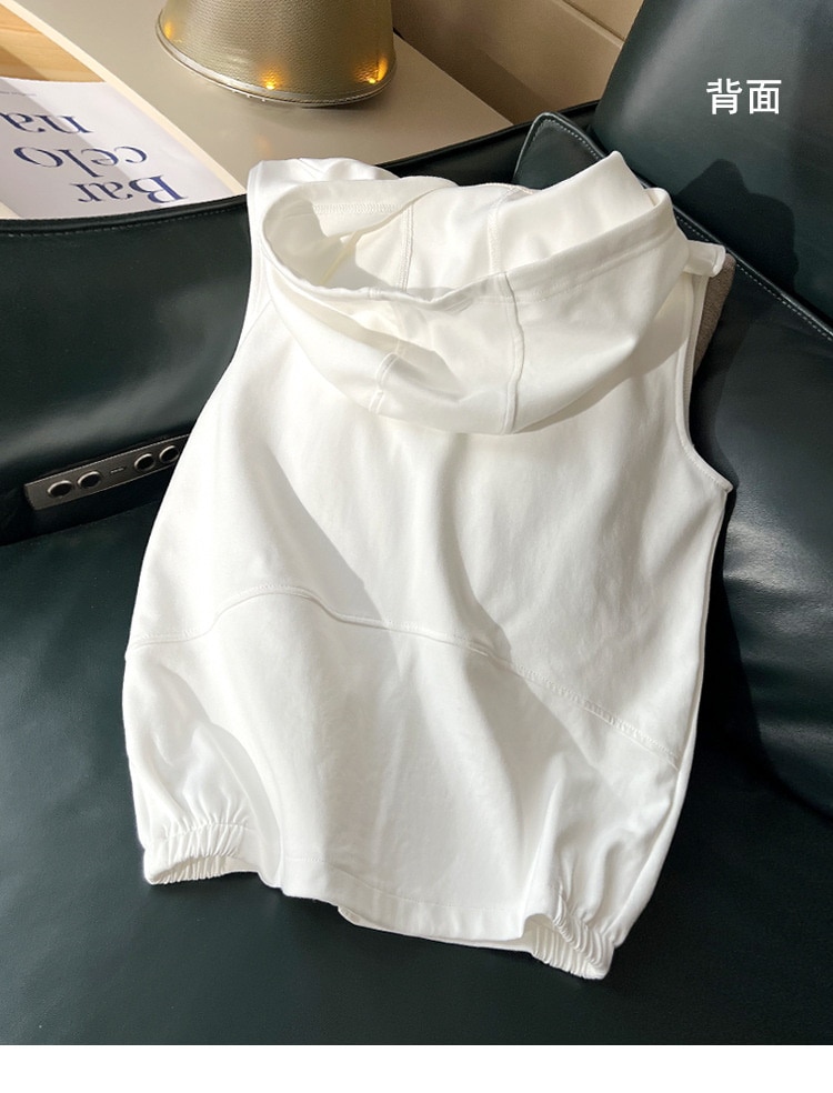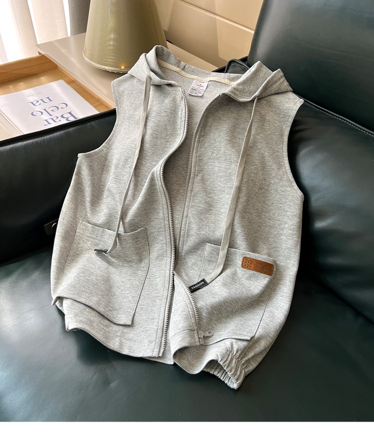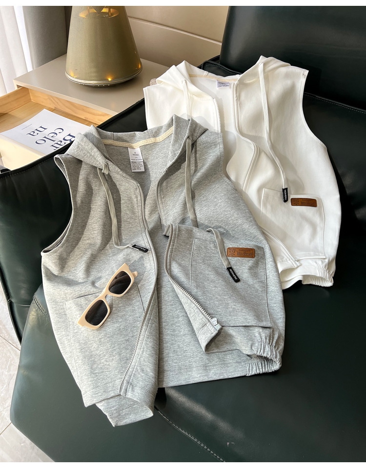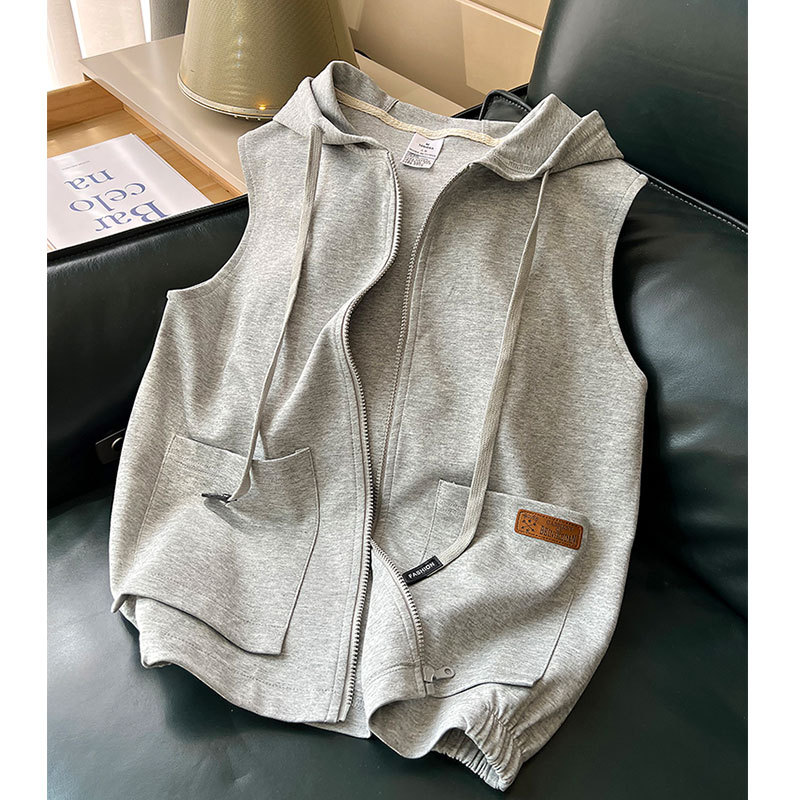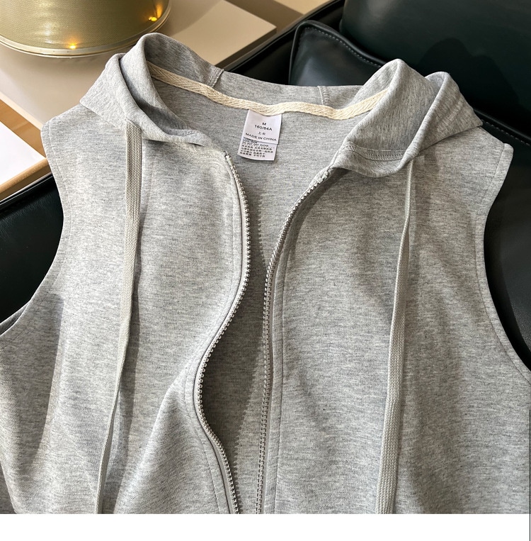 ベストウエストコート 女性 春 スポーツ カジュアル 無地 アウターウェア フード付きカーディガン ノースリーブ スウェット フード付きジャケット