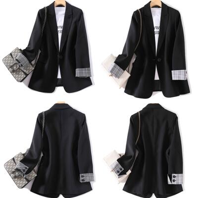 テーラード ジャケット レディース 大きいサイズ おしゃれ オフィス ビジネス OL 通勤 仕事着 リクルート チェック 上品 大人 可愛い シンプル 韓国 オルチャン コーデ 黒 春 秋 冬 20代