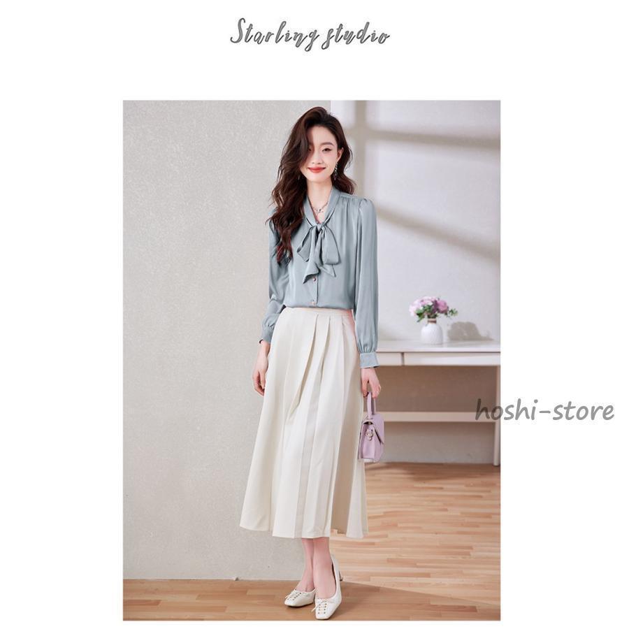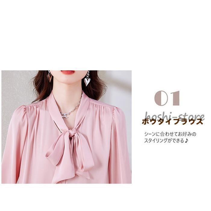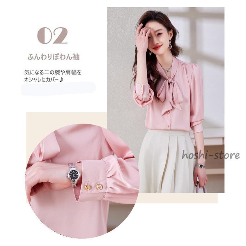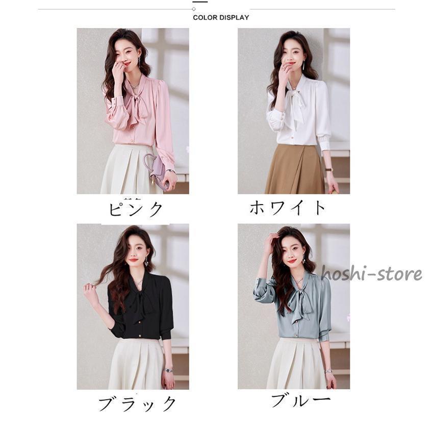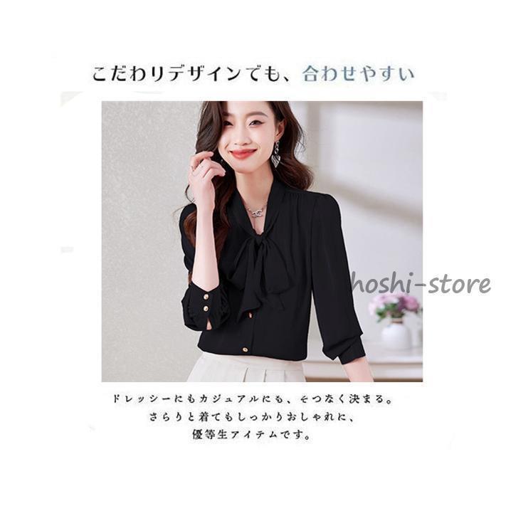 ボウタイブラウス フォーマル 長袖 ブラウス リボンブラウス 爽やか 通勤 面接 おしゃれ オフィス カジュアル シフォンブラウス シャツ ブラウス