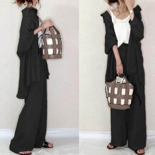 2024新作 日系 長袖 おしゃれ uvカット 高級感 セット ゆったり 細見え セット涼しく楽ちんセットアップ 大きめサイズ シャツ ワイドパンツ 二点セット