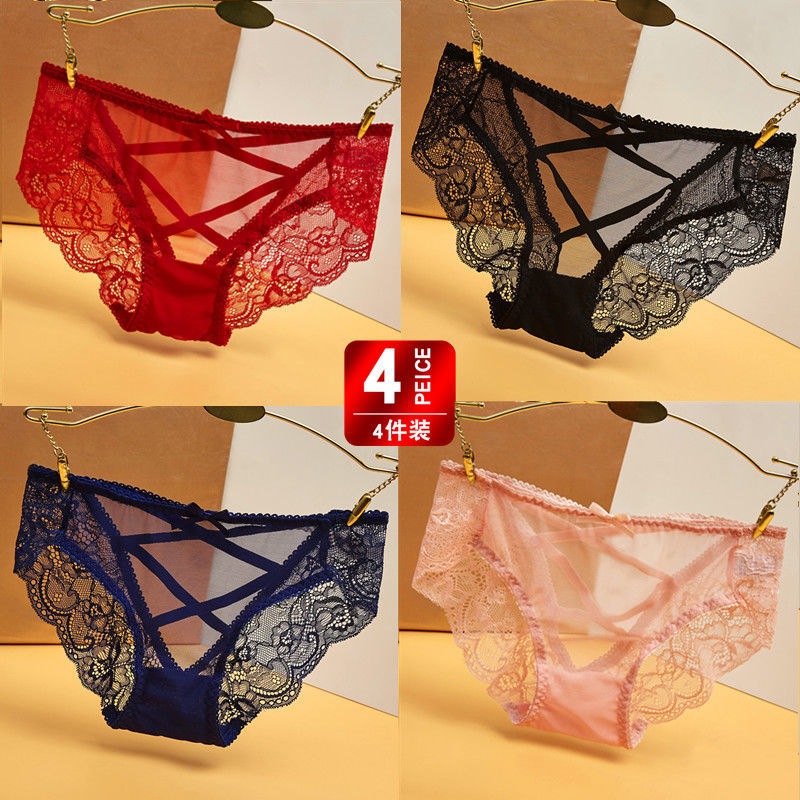 ショーツセット セット売りショーツ 4本入りパンツ綿股間レースセクシー誘惑無痕透明三角パンツ レディース 韓国ファッション ショーツ