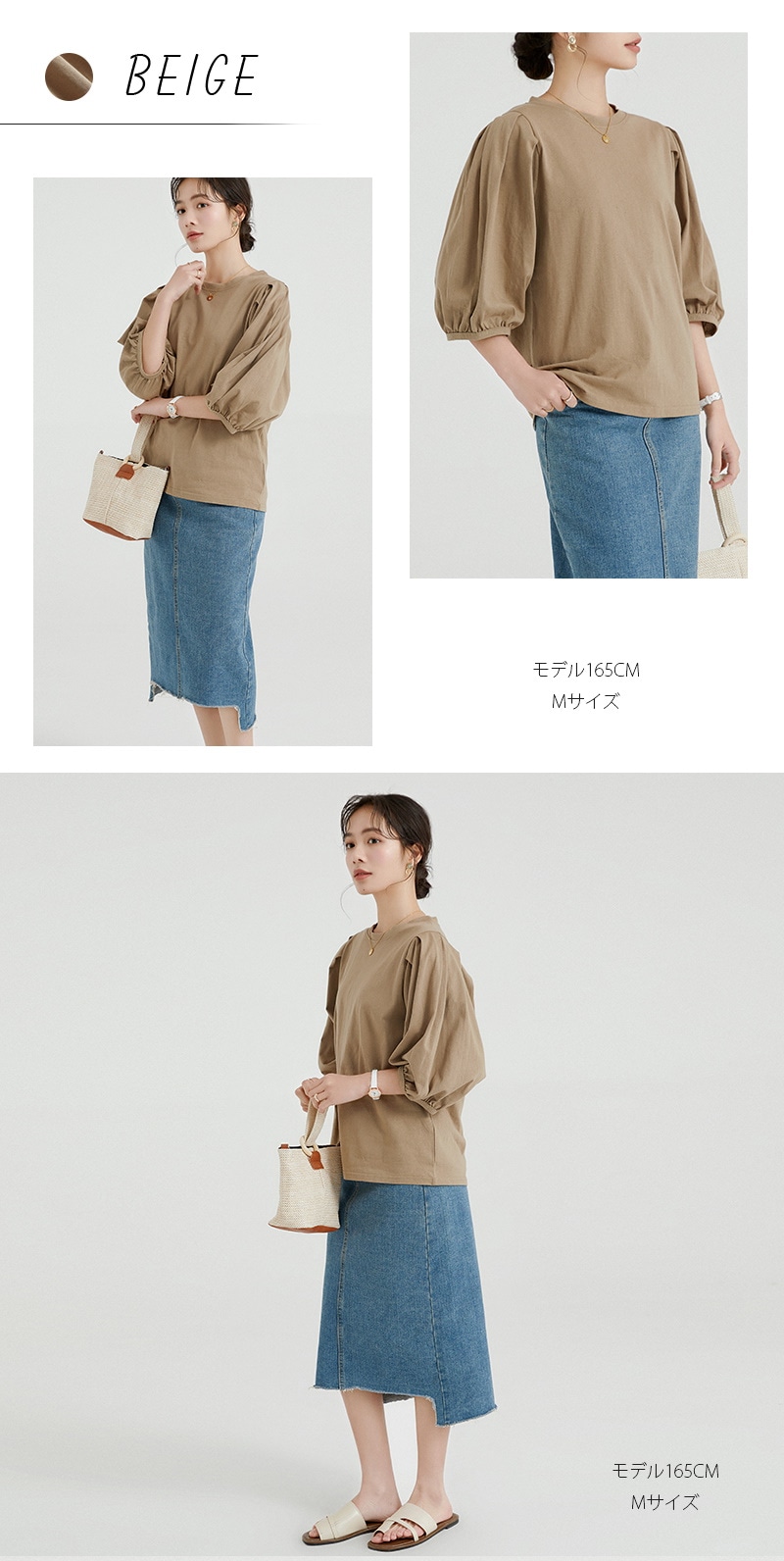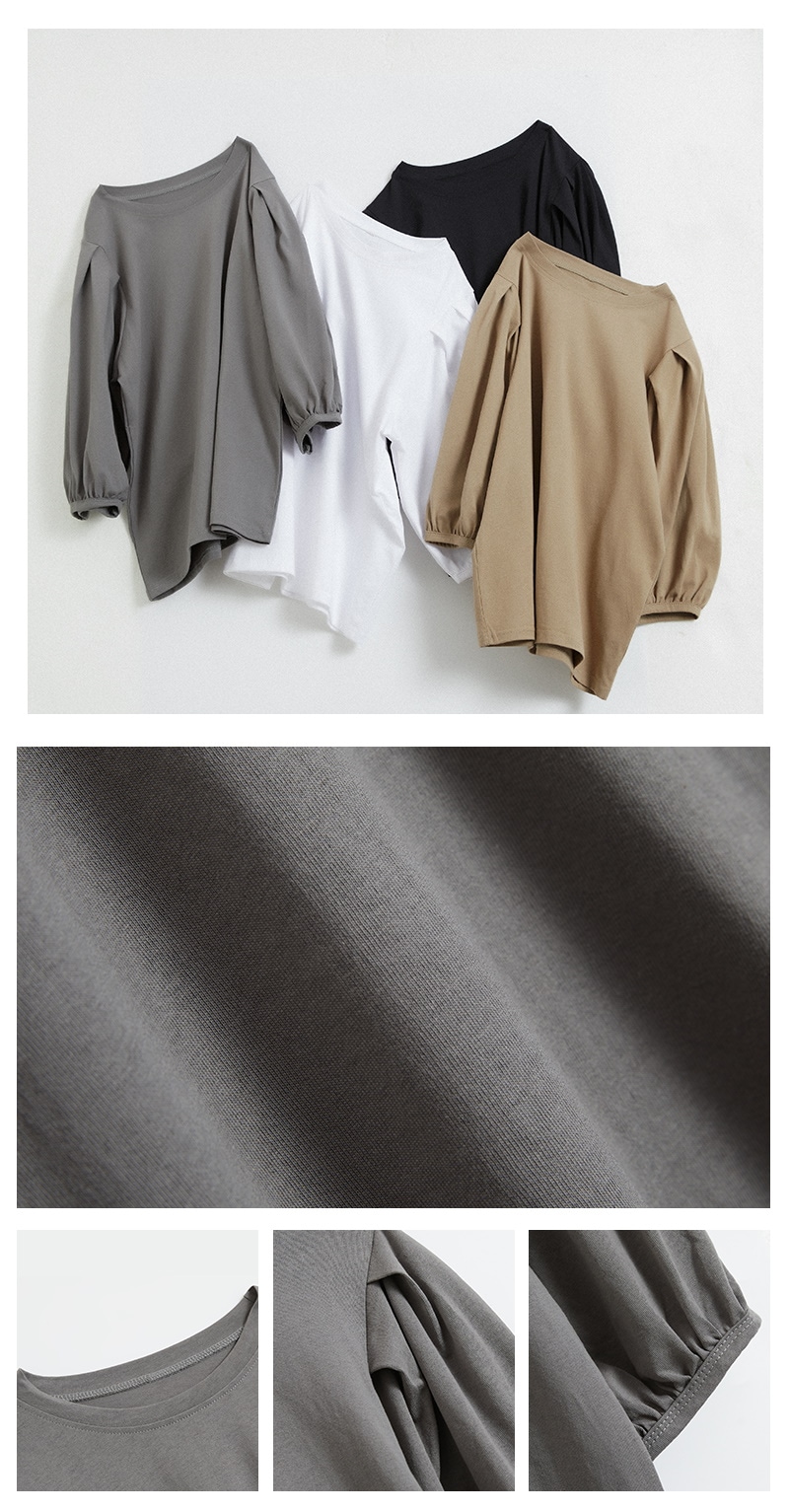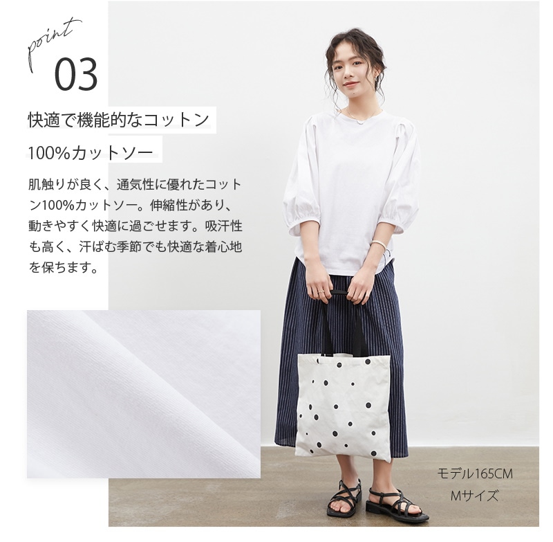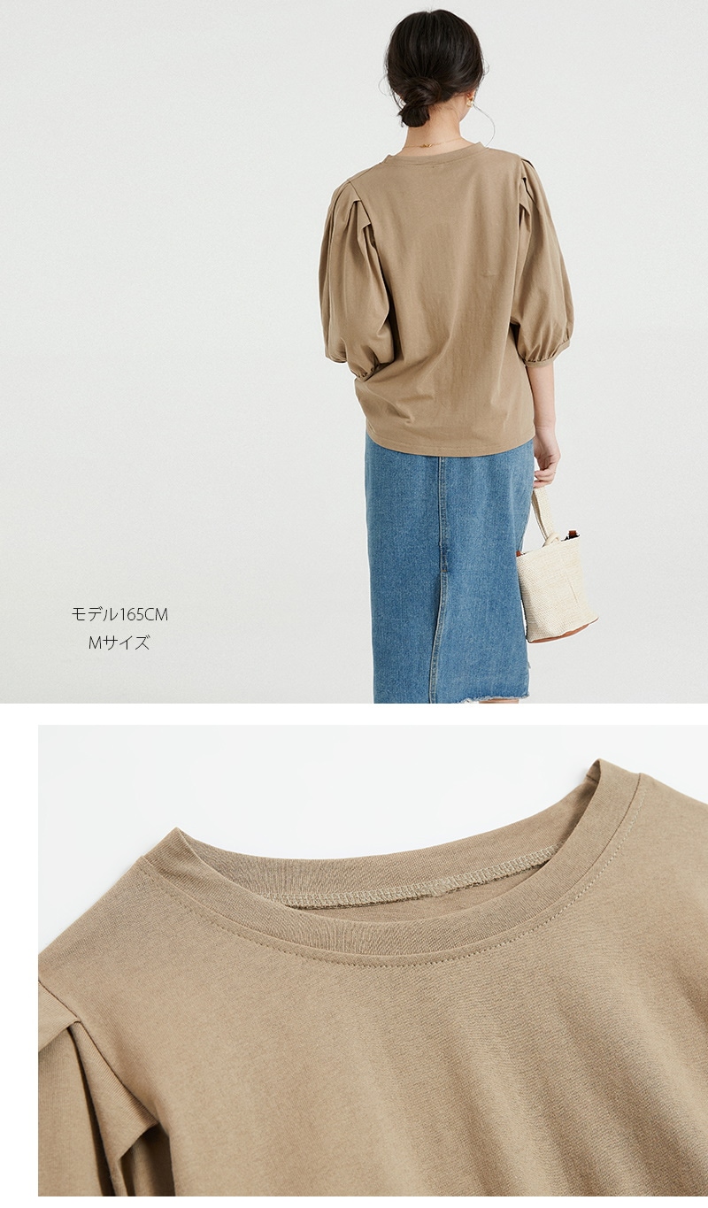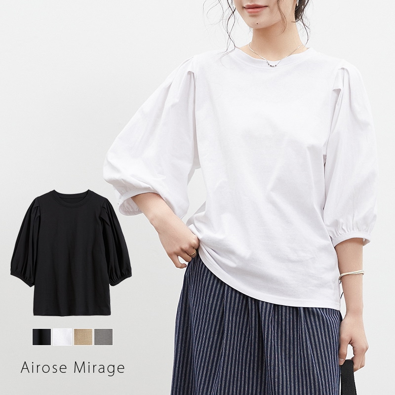 Tシャツ カットソー レディース M L コットン100% ゆったり 大きいサイズ ハングバルーンスリーブ 春 夏 五分袖 アイローズ シャツ ブラウス