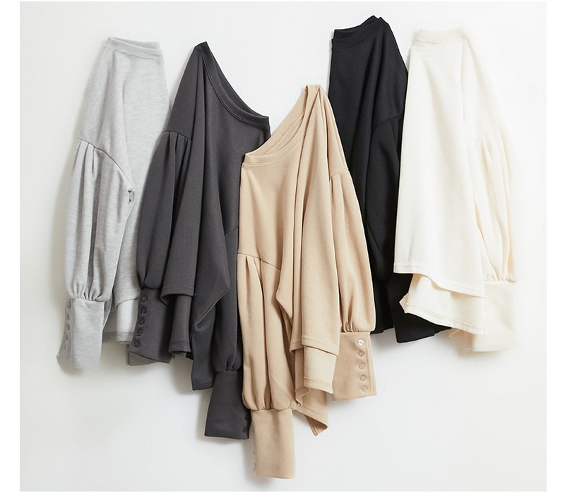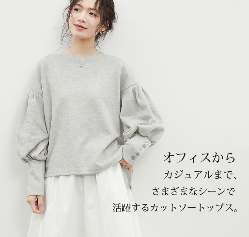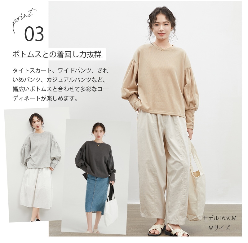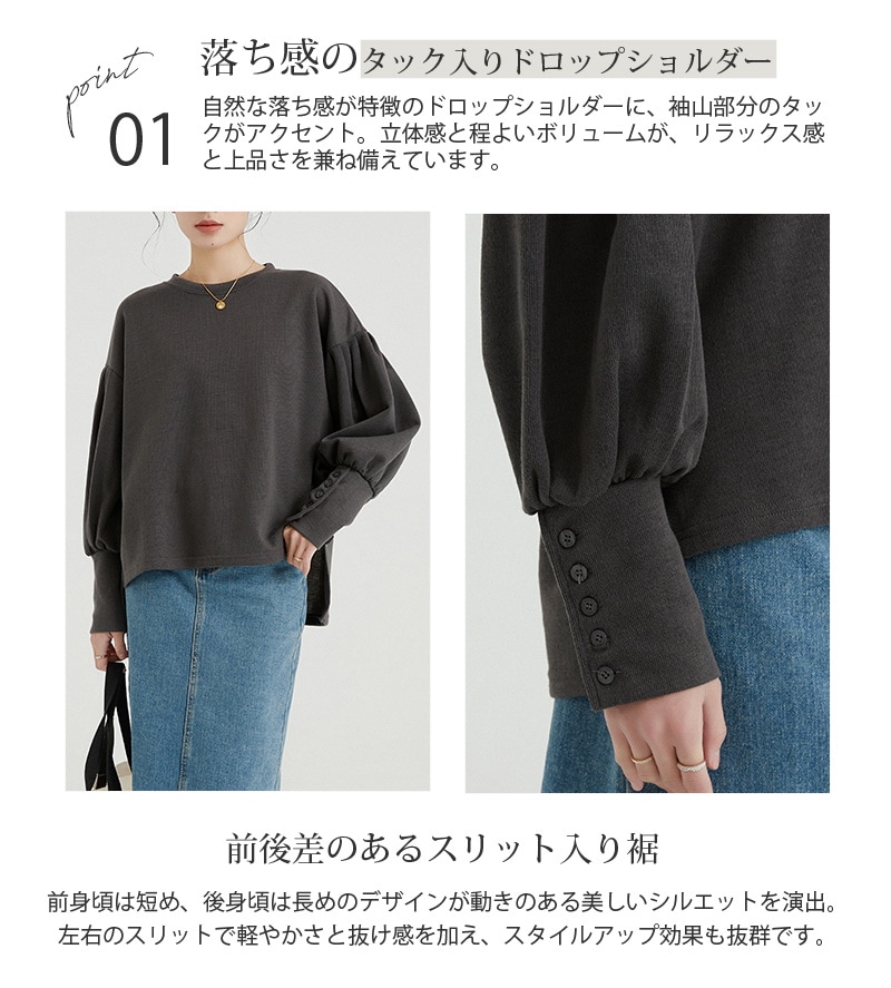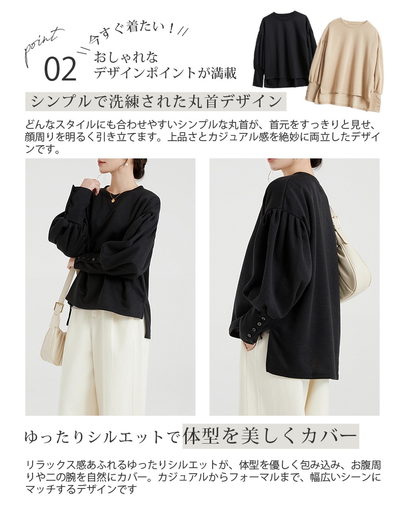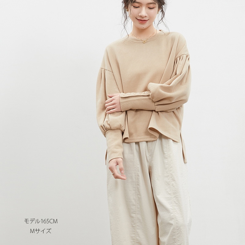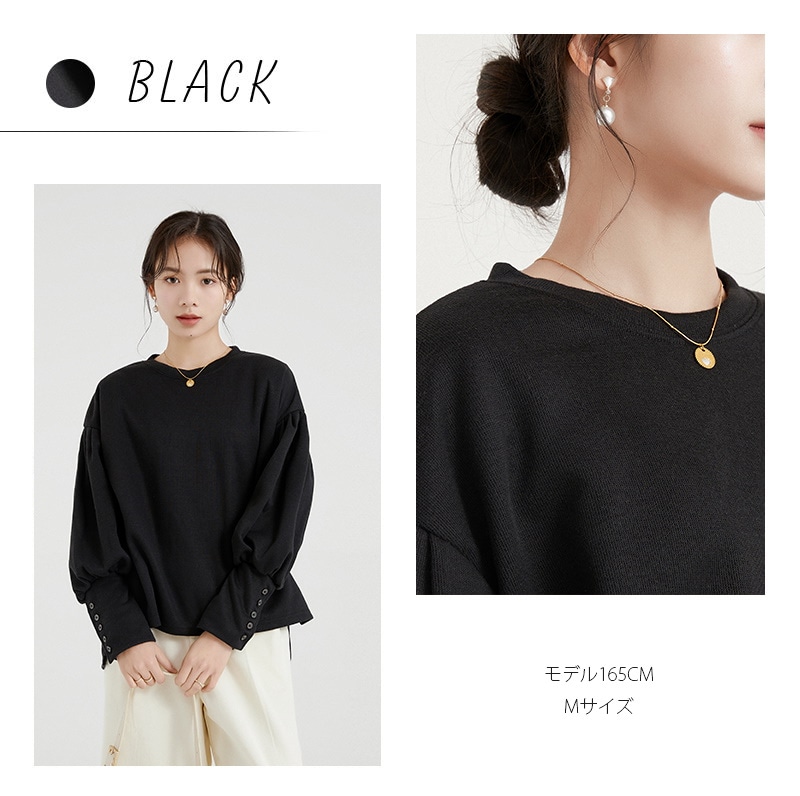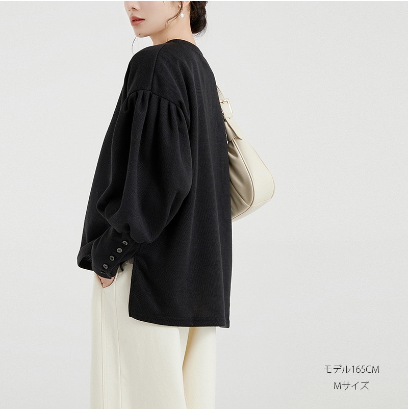 ぽわん袖 ブラウス トップス レディース ボリュームスリーブ バルーンスリーブ バルーン袖 ぽわん袖 長袖 ボートネック ノーカラー 体型カバー ゆったり きれいめ オフィス 通勤 春