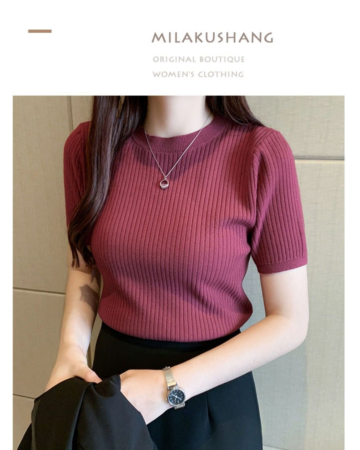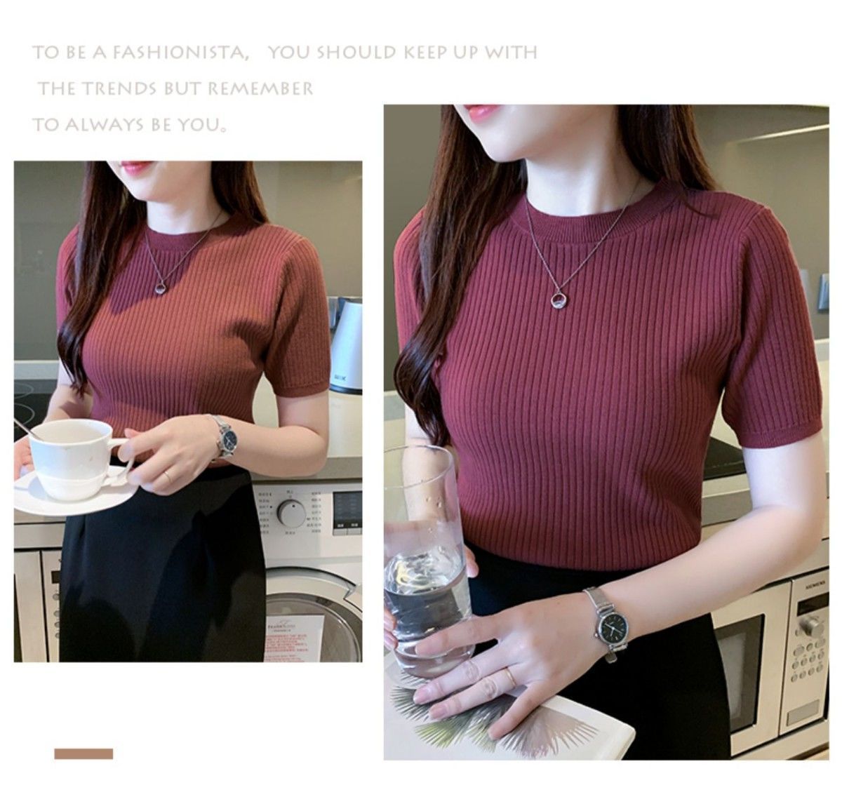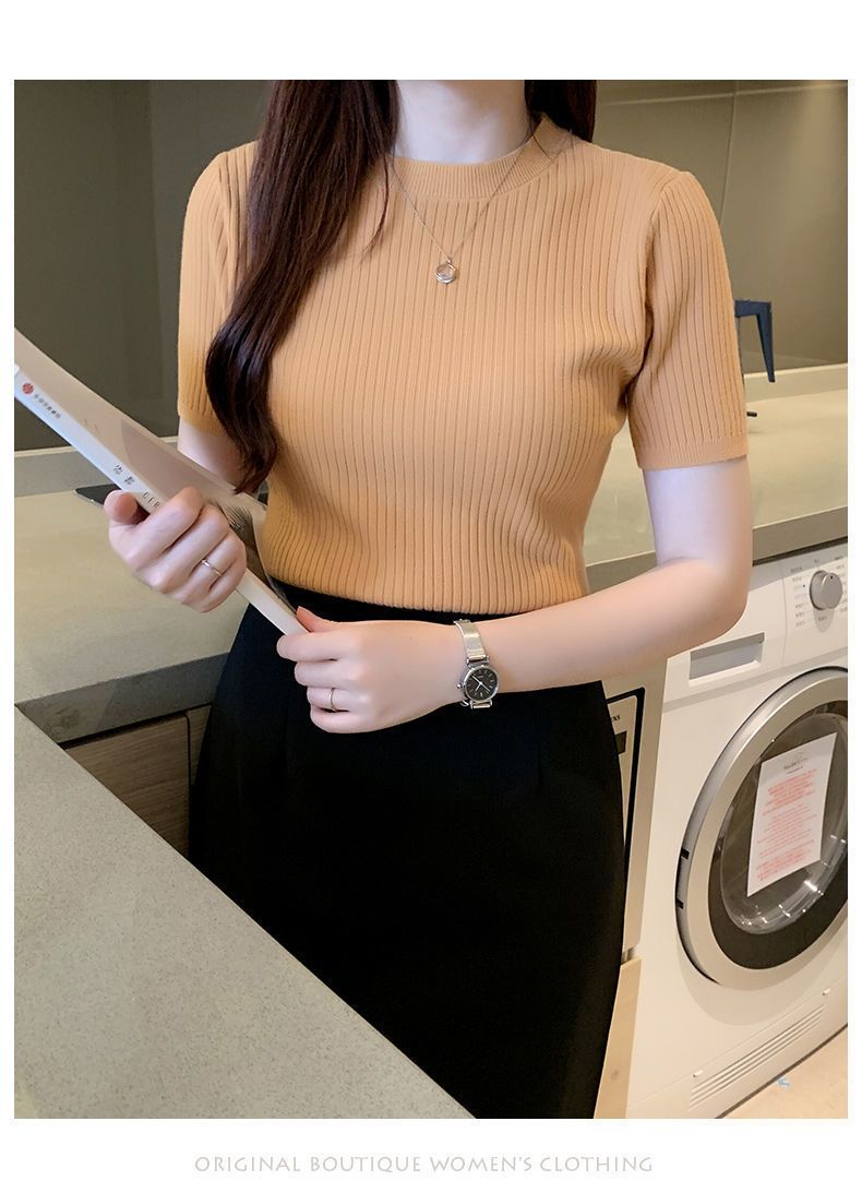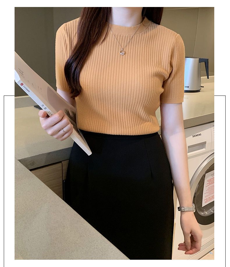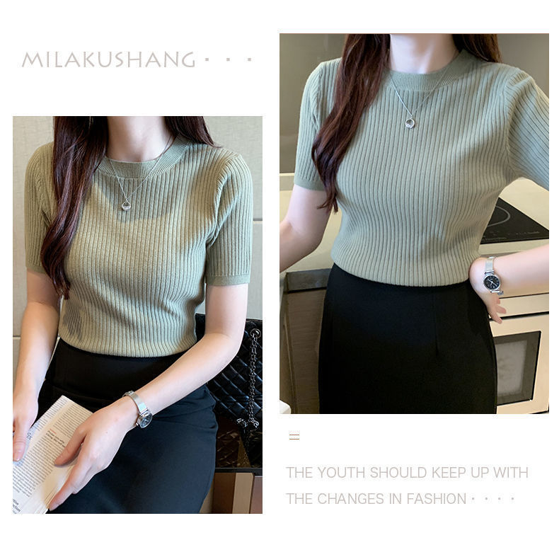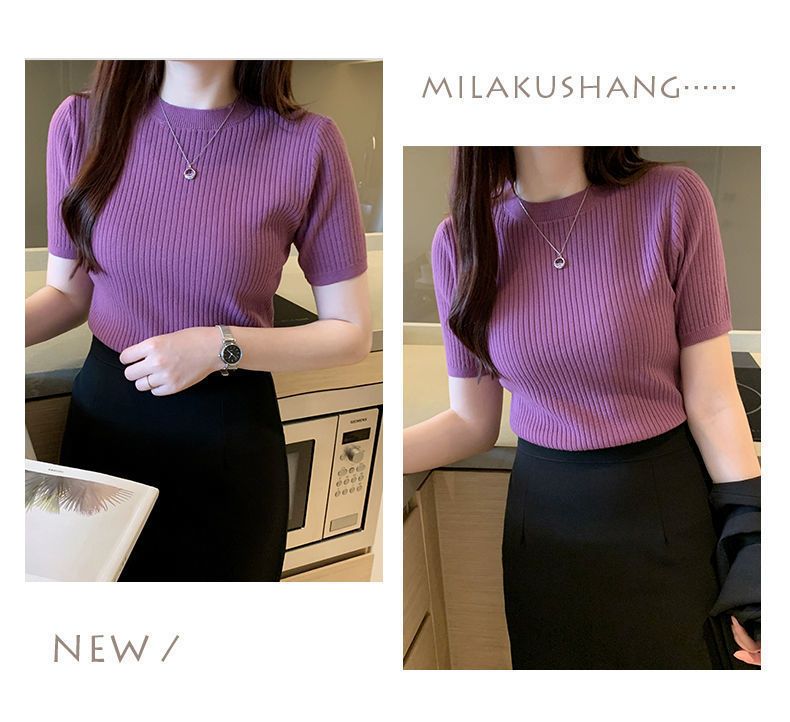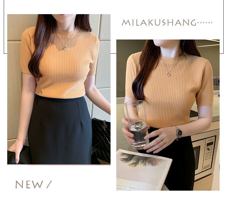 2024新作 シンプル 気質 インナー トップス ニット 半袖 アンダー ウェア Tシャツ レディース 大きいサイズ ロングTシャツ ベーシックニット 人気なリブニッ