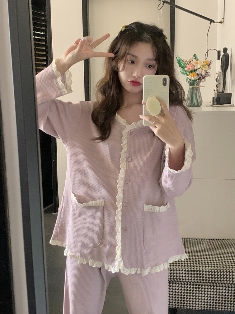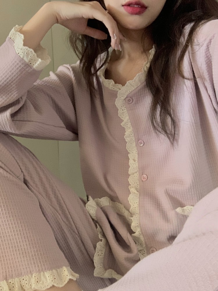 あったかルームウェア 韓国ファッション2点セットパジャマパジャマ レディース ルームウェアパジャマ部屋着 セットアップレディースパジャマレースルームウェア セットアップ