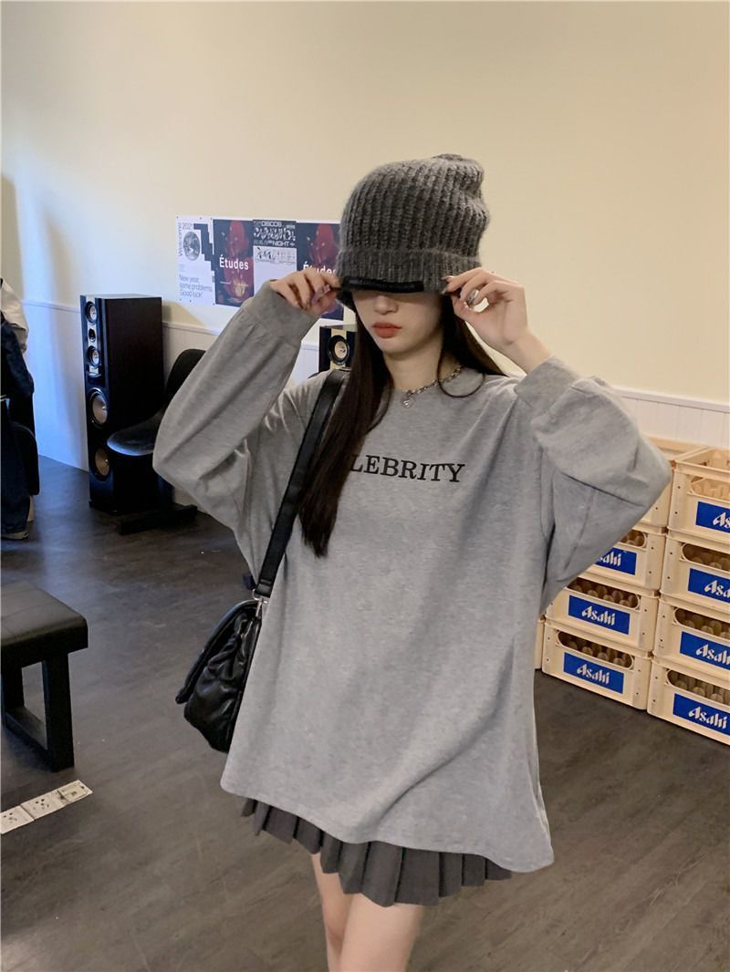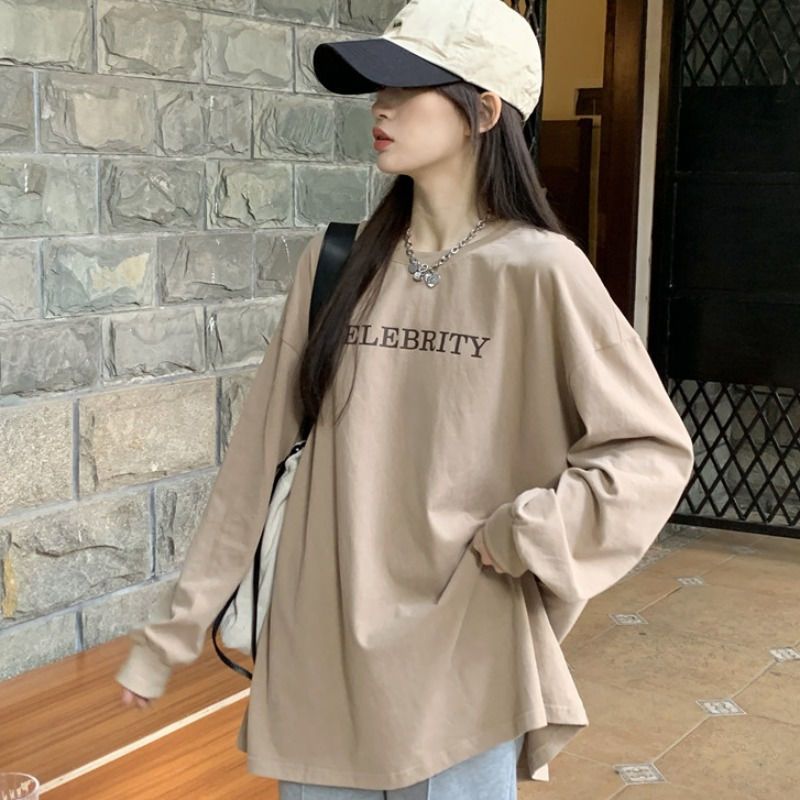 スウェット 無料 春 長袖 Tシャツ レディース 韓国ファッション カジュアル百掛けtシャツ 怠惰な風 ゆったり長袖トップス スウェット 体型カバー着痩せ