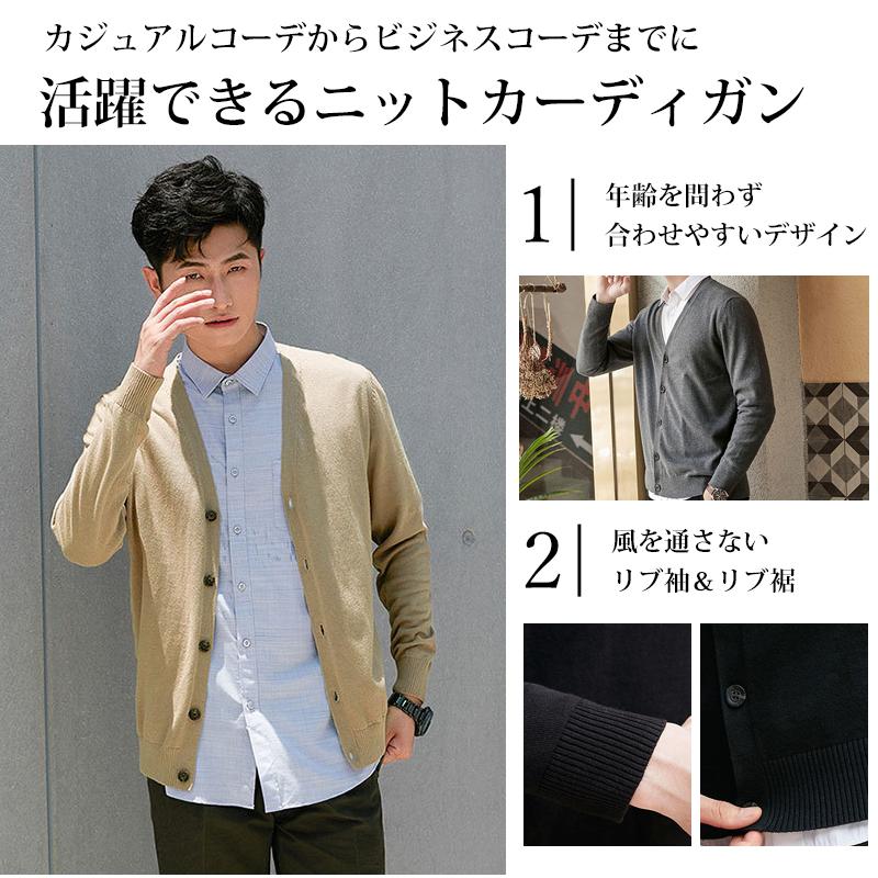 カラーカーディガン ニット カーディガン メンズ カーデ トップス Vネック 無地 長袖 薄手 無地 ビジネス 冷房対策 カーディガン