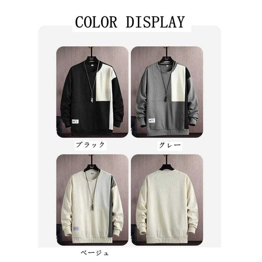 トレーナー メンズ 切り替え クルーネック 長袖Tシャツ スウェット カジュアル シンプル トップス 長袖 Tシャツ