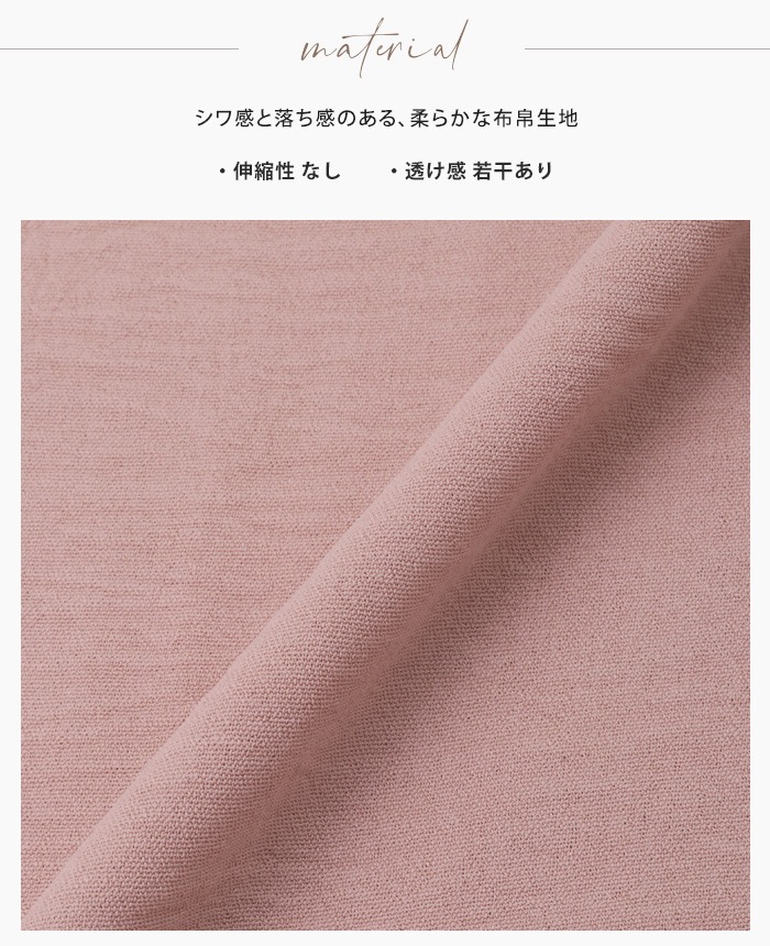 生地感:シワ感と落ち感のある、柔らかな布帛生地