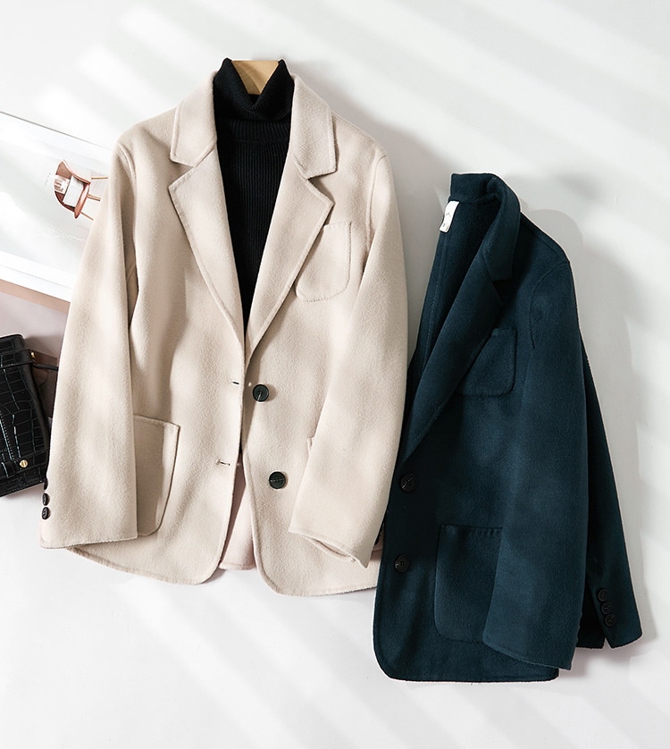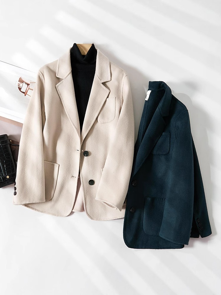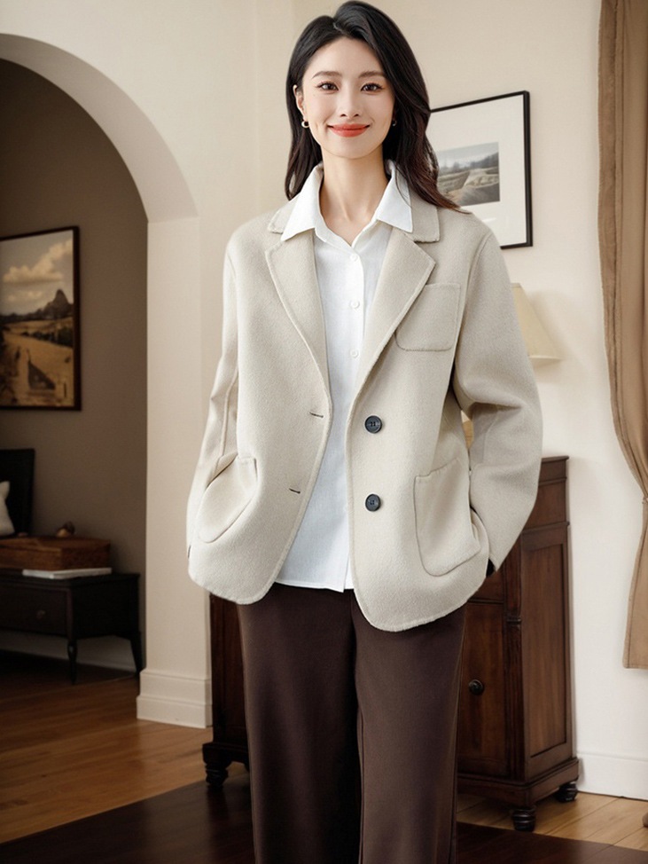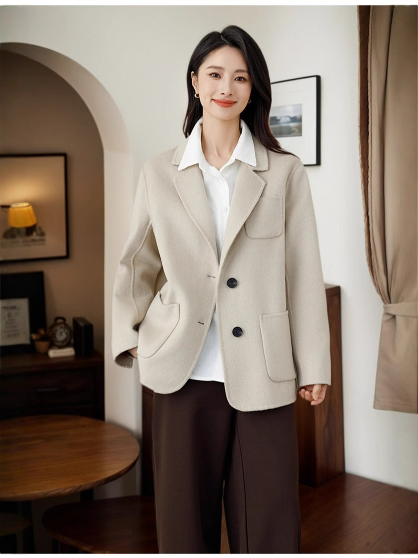 2025新気質シニア通勤ウールスーツ女性無地大ポケットツイードジャケット女性スーツ春服 ファー 毛皮アウター