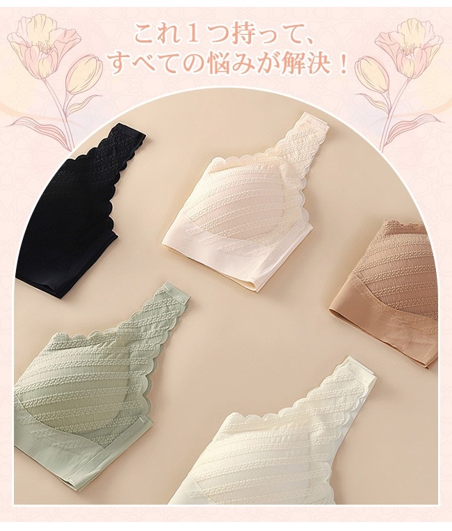 シームレスブラ 美胸 ナイトブラ レース ブラジャー スカラップ U型 パッド付き ノンワイヤー 昼夜兼用 インナー レディース 女性 肌着