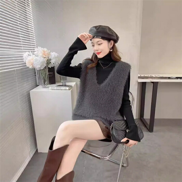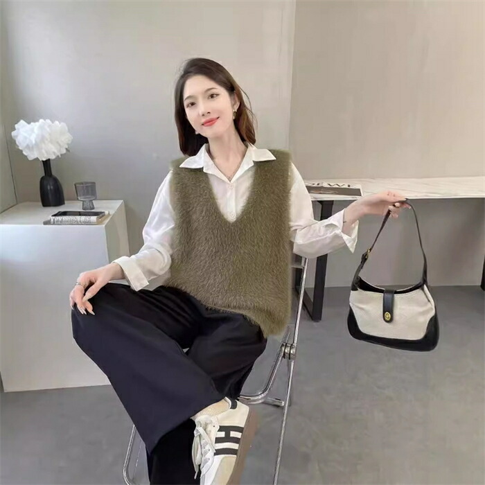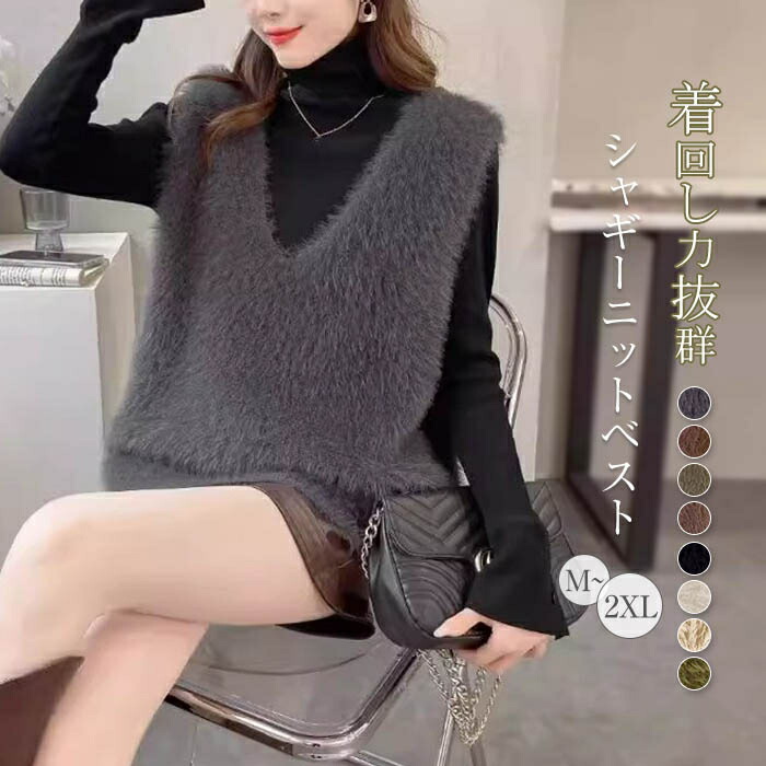 ニット ベスト レディース 秋冬 シャギーニット ベスト シャギーベスト ニット Vネック レイヤード シャギー ジレ 着回し トレンド トップス 毛足長め プルオーバー セーター ノースリーブ おし
